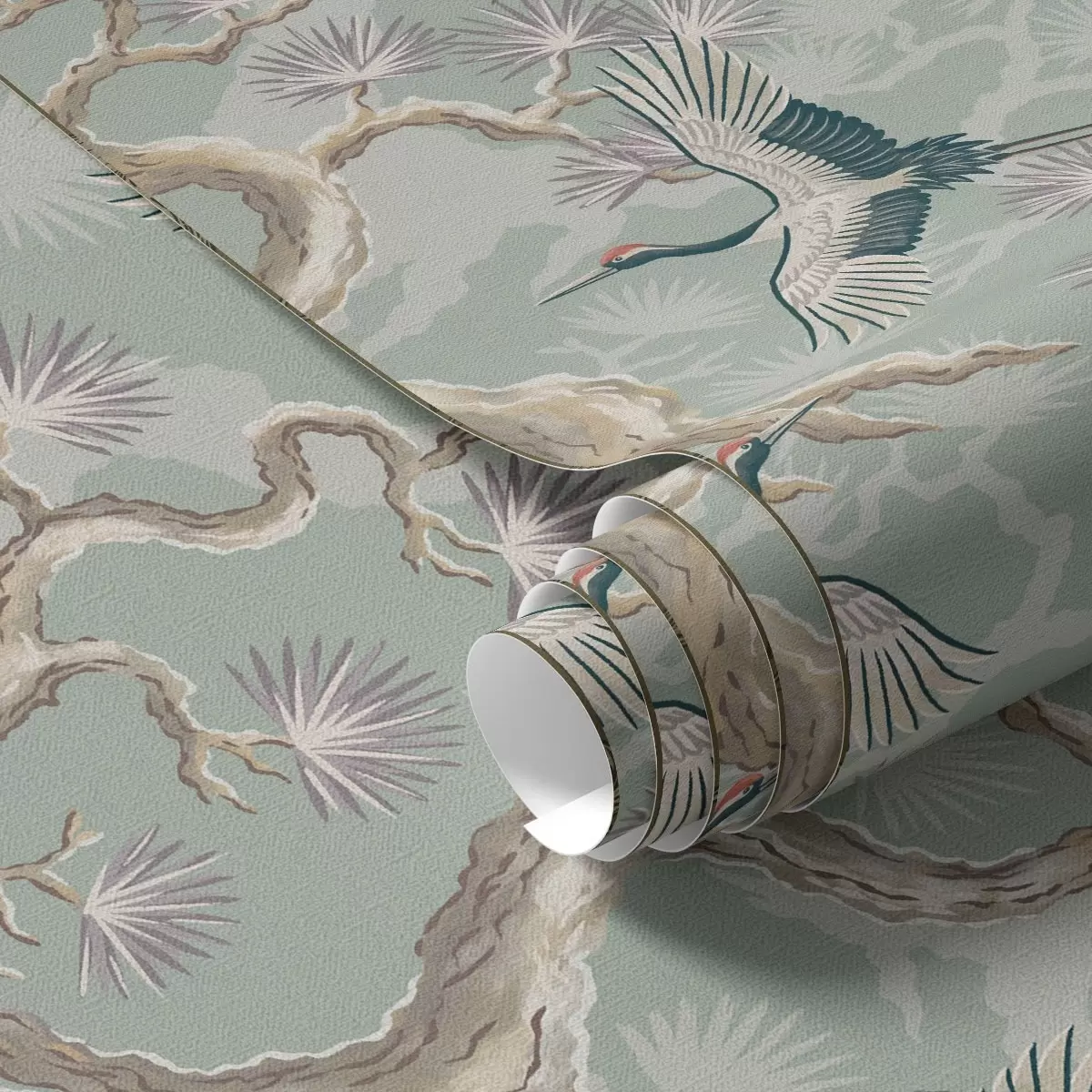 Tapeta Ždralovi među zakrivljenim granama na mekoj pozadini boje kadulje br. a01023