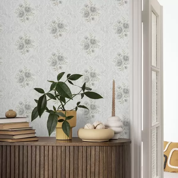 Tapeta Svijetli damast uzorak sa sivim ružama u mekim dijamantima br. a01024