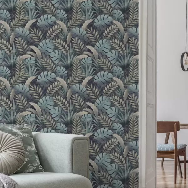 Tapeta Tropsko lišće u hladnim plavo-zelenim tonovima br. a01035