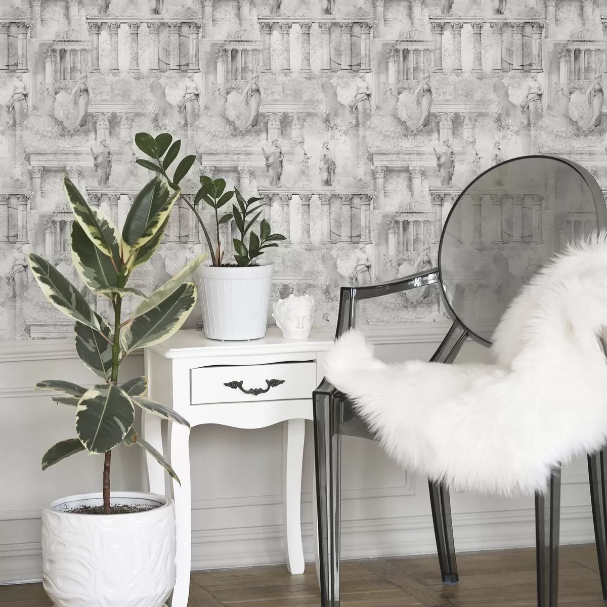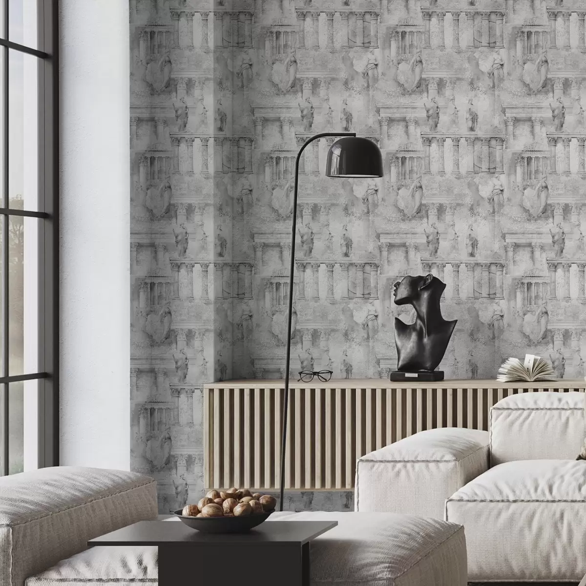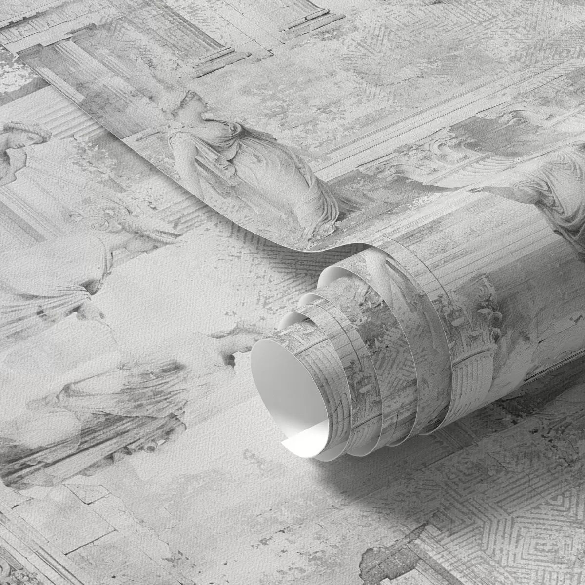 Tapeta Klasični kipovi i stupovi u izblijedjelim sivim nijansama br. a01041v1