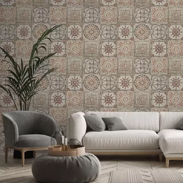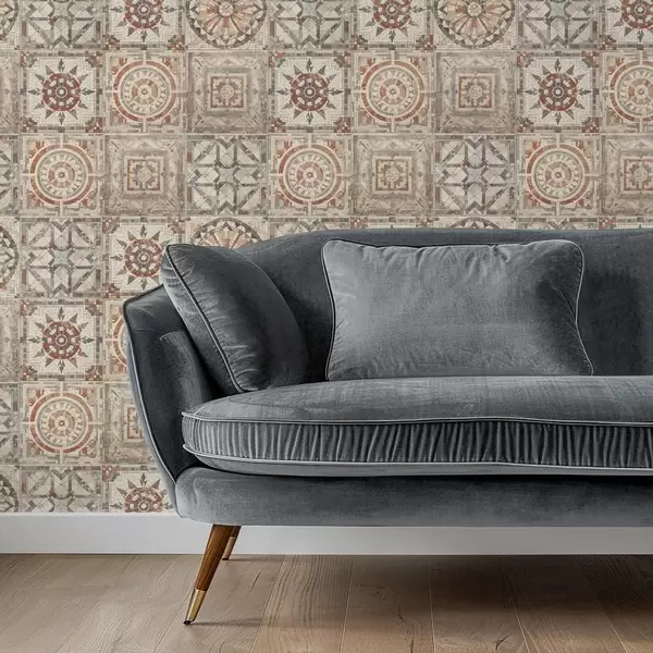 Tapeta Stari kameni mozaični medaljoni s istrošenim detaljima br. a01042