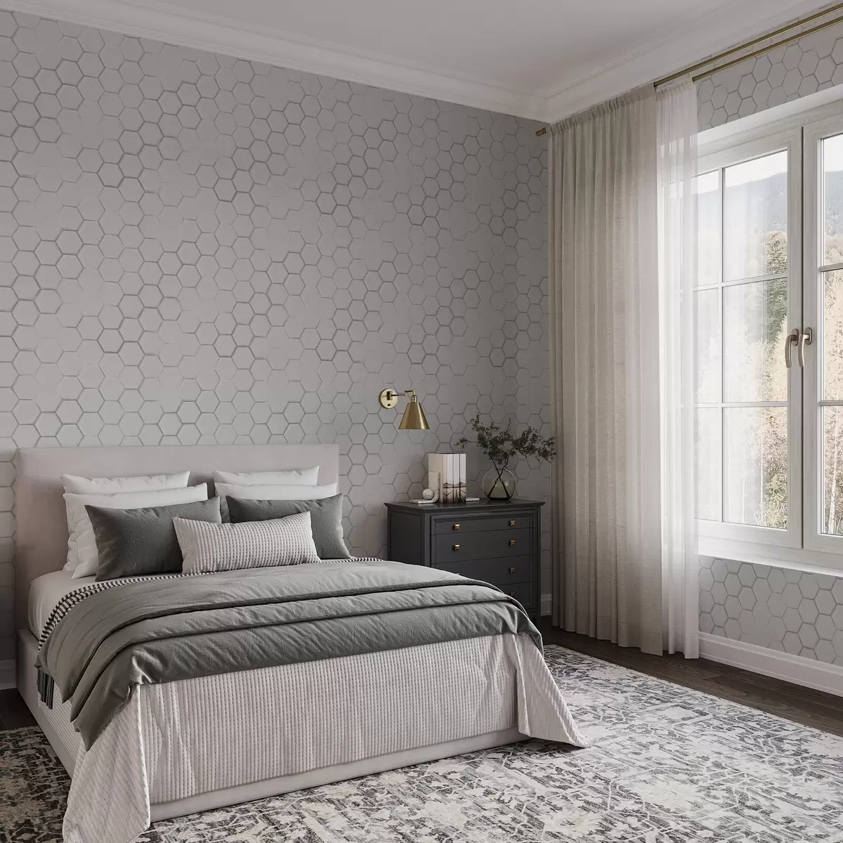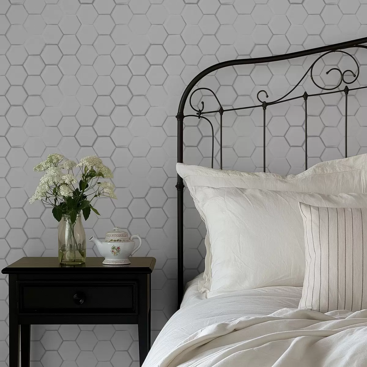 Tapeta Bijeli trodimenzionalni šesterokuti na glatkoj pozadini br. a01059