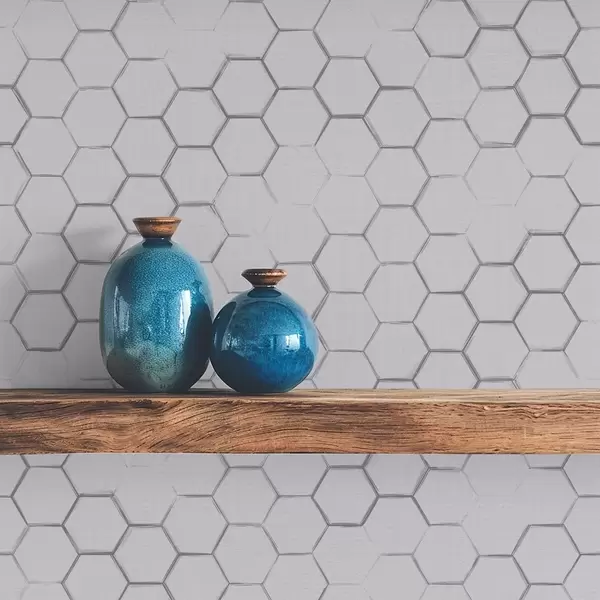 Tapeta Fina heksagonalna mreža na svijetlo sivoj teksturiranoj pozadini br. a01060