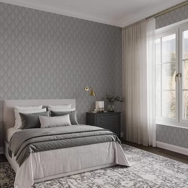 Tapeta Sivi Art Deco s lepezastim oblicima br. a01064