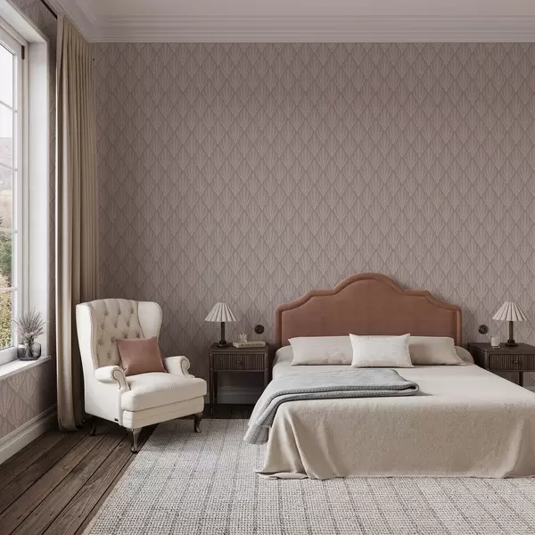 Tapeta Puderasto bež Art Deco s mekim lepezama br. a01064v1