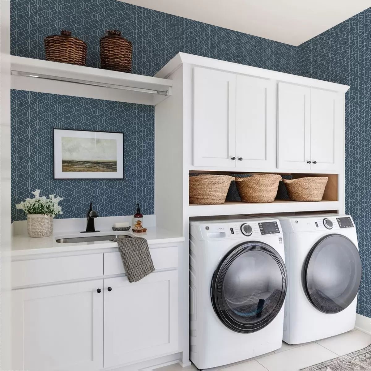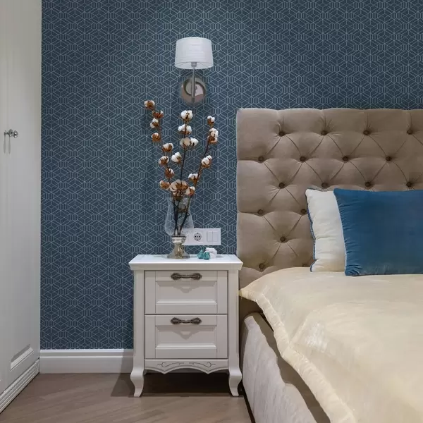 Tapeta Plava pozadina s bijelim linearnim kockama u mreži br. a01067v1