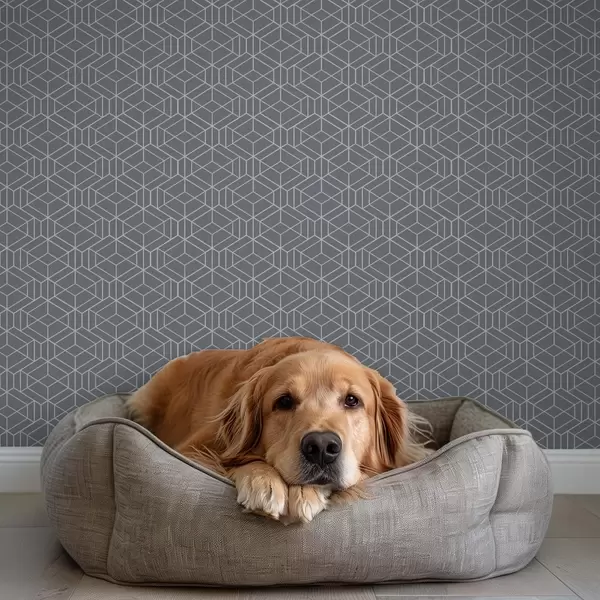 Tapeta Siva pozadina s bijelim trodimenzionalnim kockama u mreži br. a01067v2