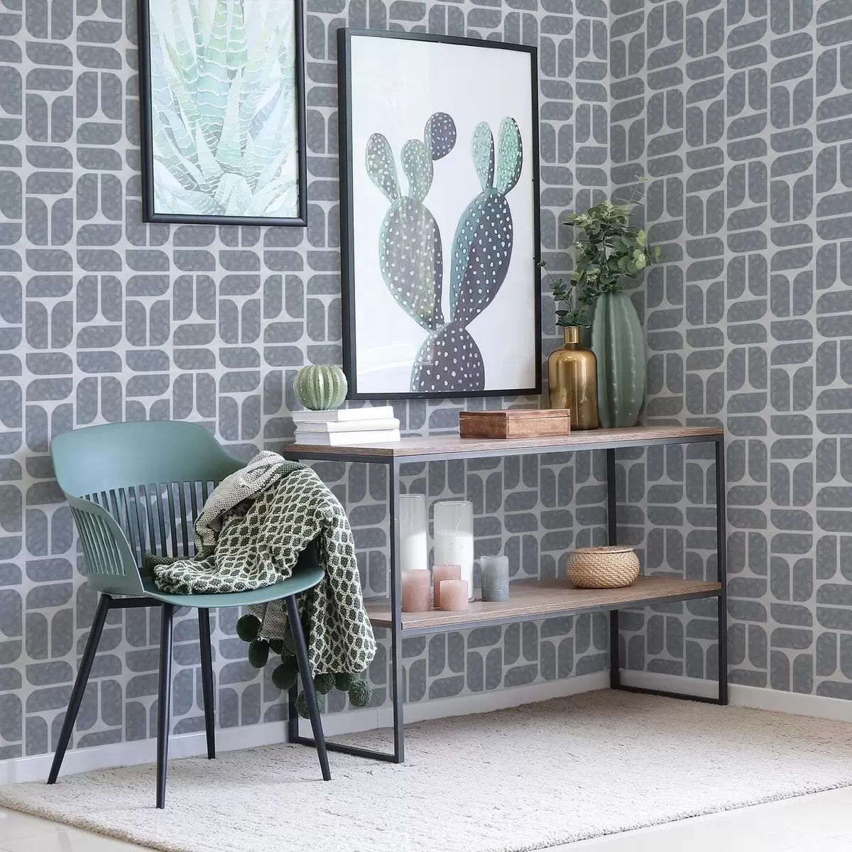 Tapeta Sivi mozaik koji se izmjenjuje u zaobljenim i pravokutnim oblicima br. a01069