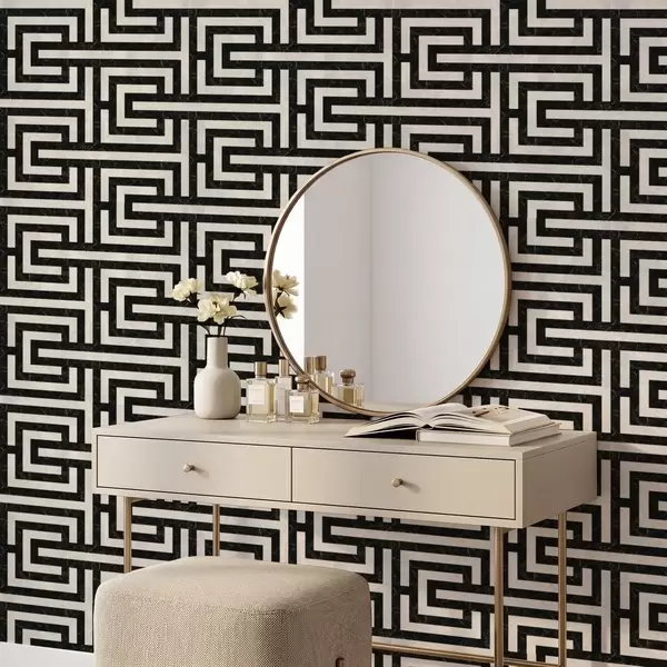 Tapeta Crno-bijeli geometrijski uzorak labirinta br. a01073
