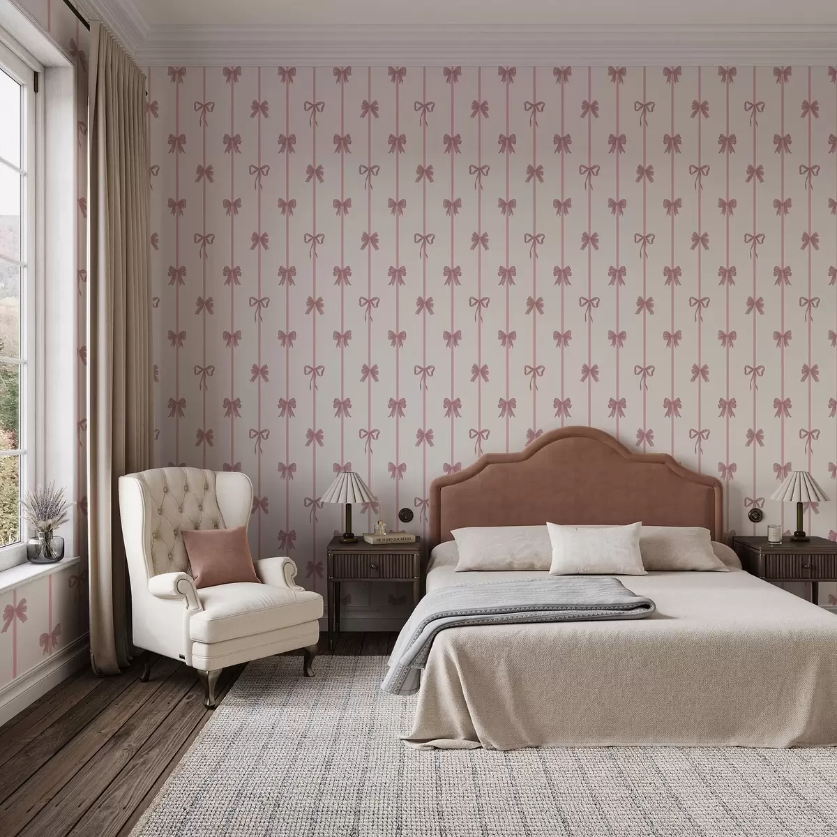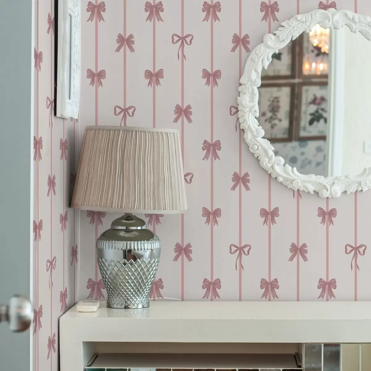 Tapeta Ružičaste mašne s vrpcama na svijetloj pozadini br. a01074