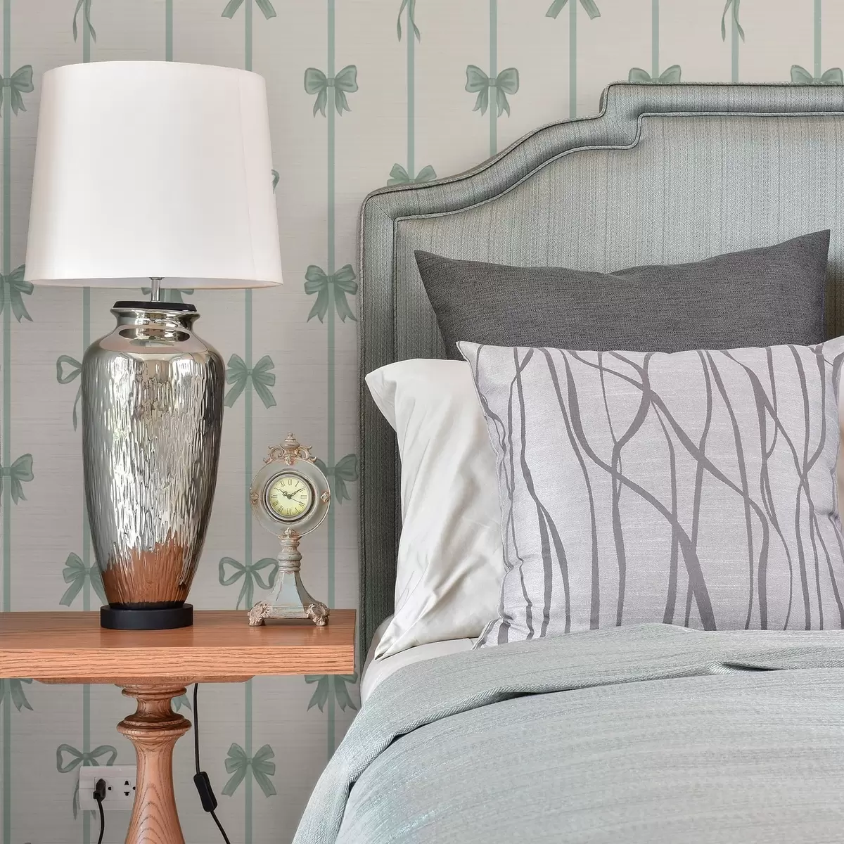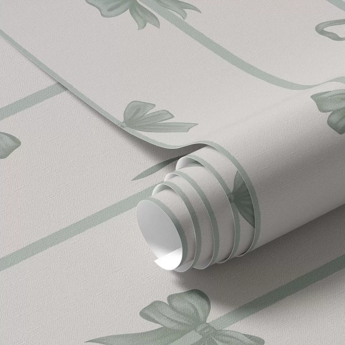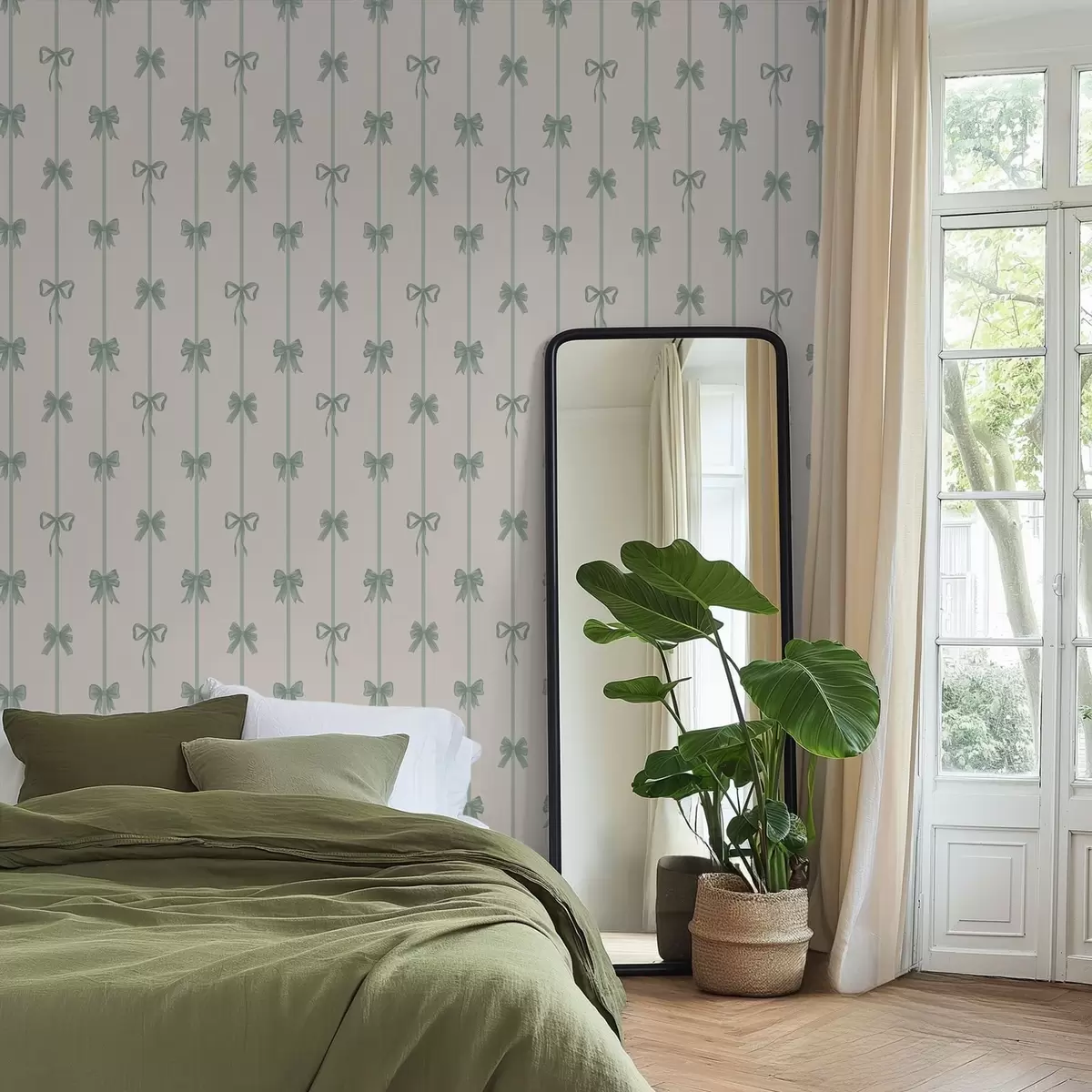 Tapeta Zelene mašne s vrpcama na bež pozadini br. a01074v1