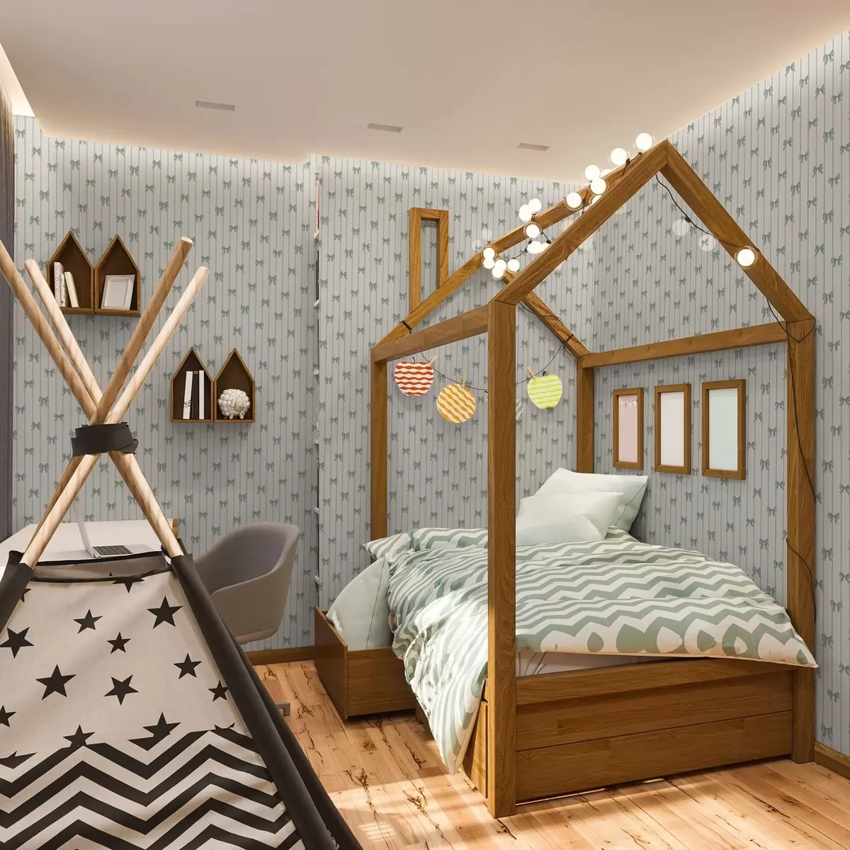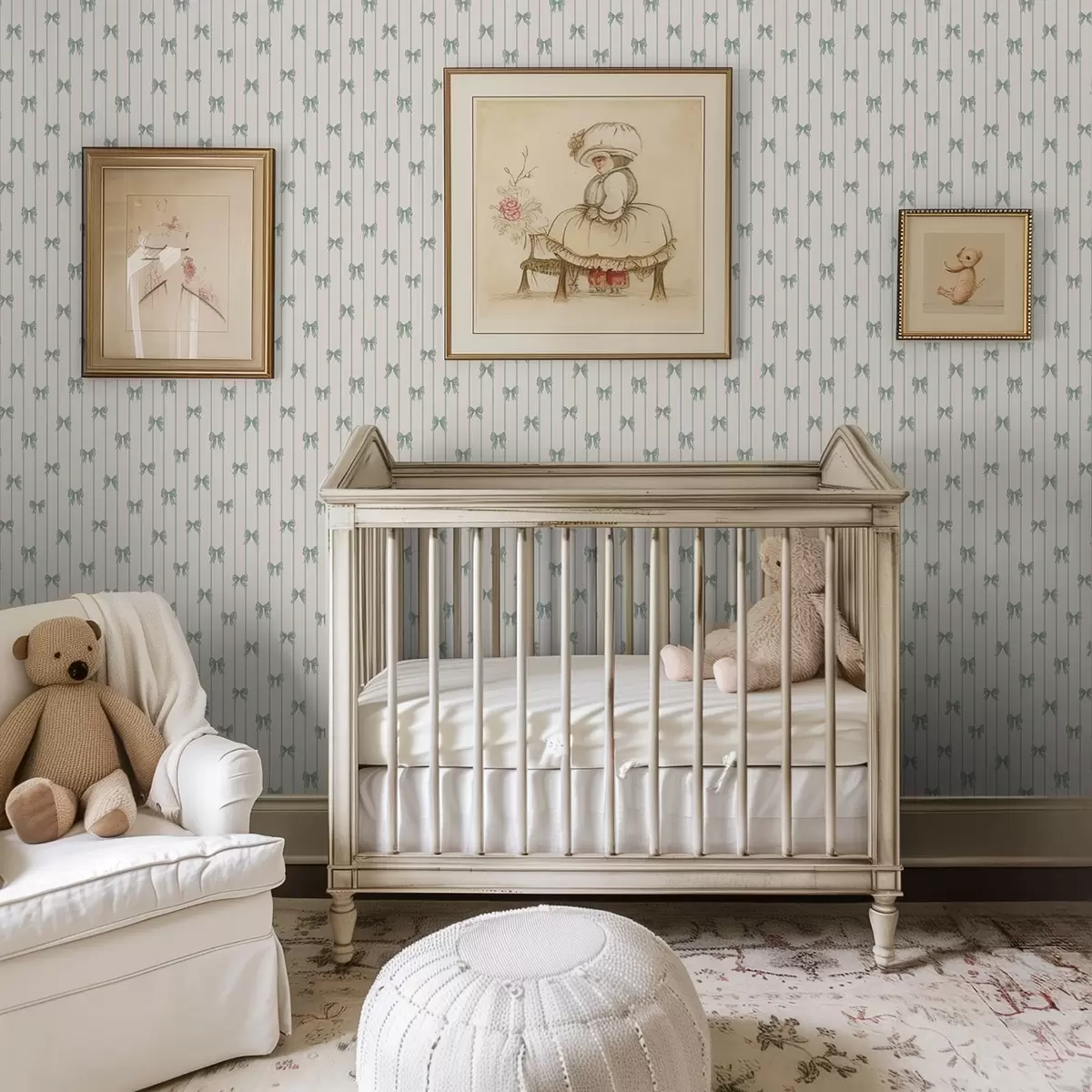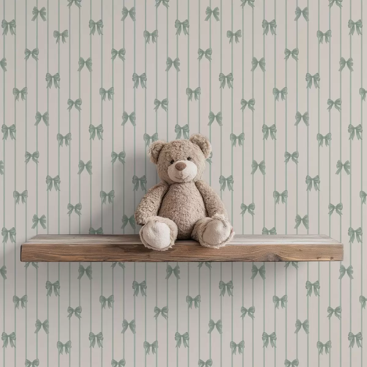 Tapeta Male zelene mašne u prugama na bež pozadini br. a01076v2