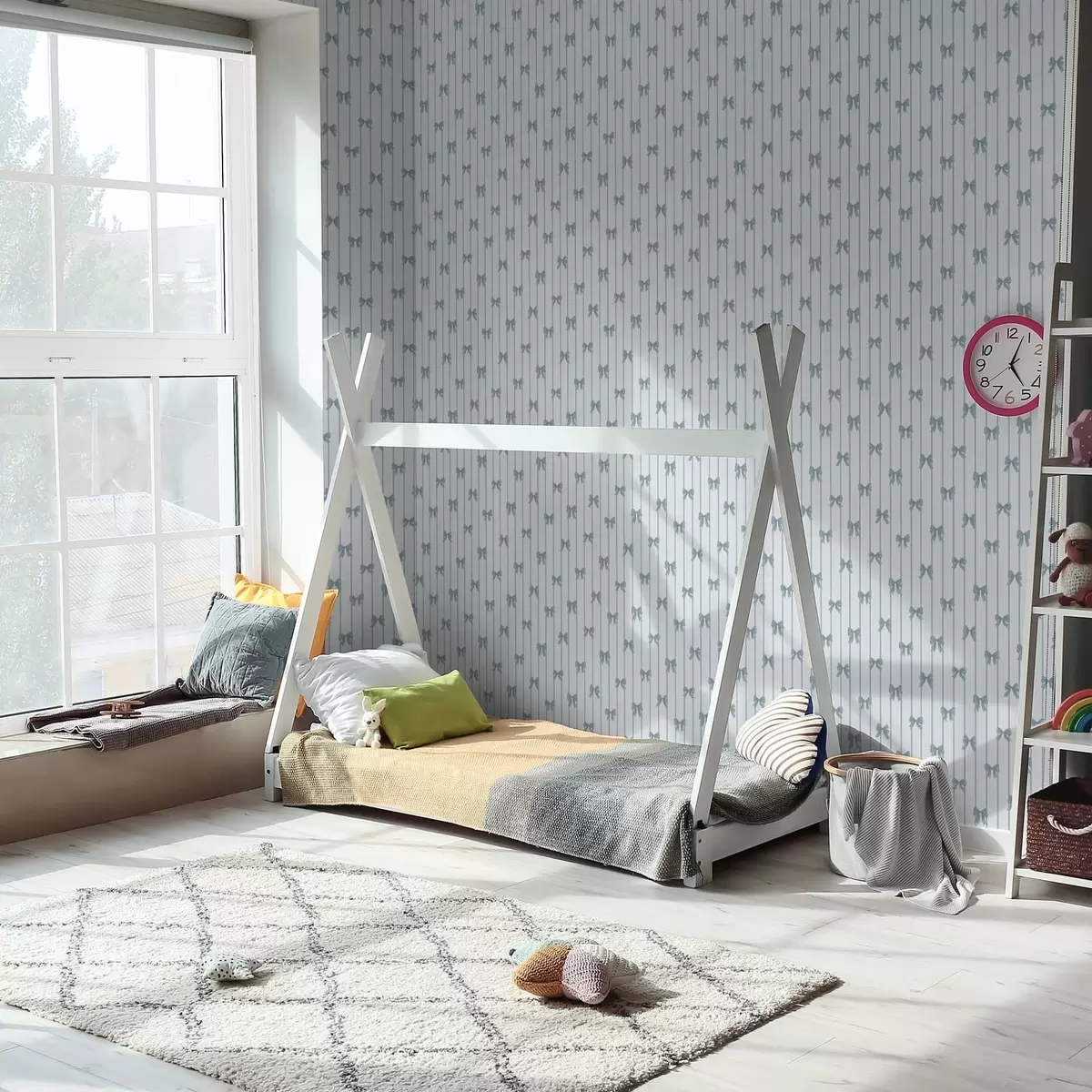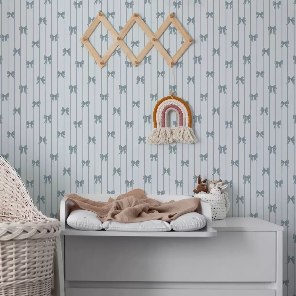 Tapeta Svijetli prugasti uzorak s vrpcama i mašnama br. a01076v3