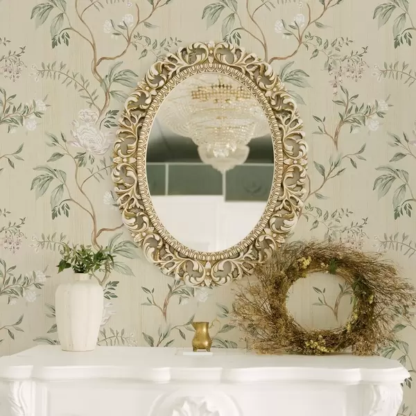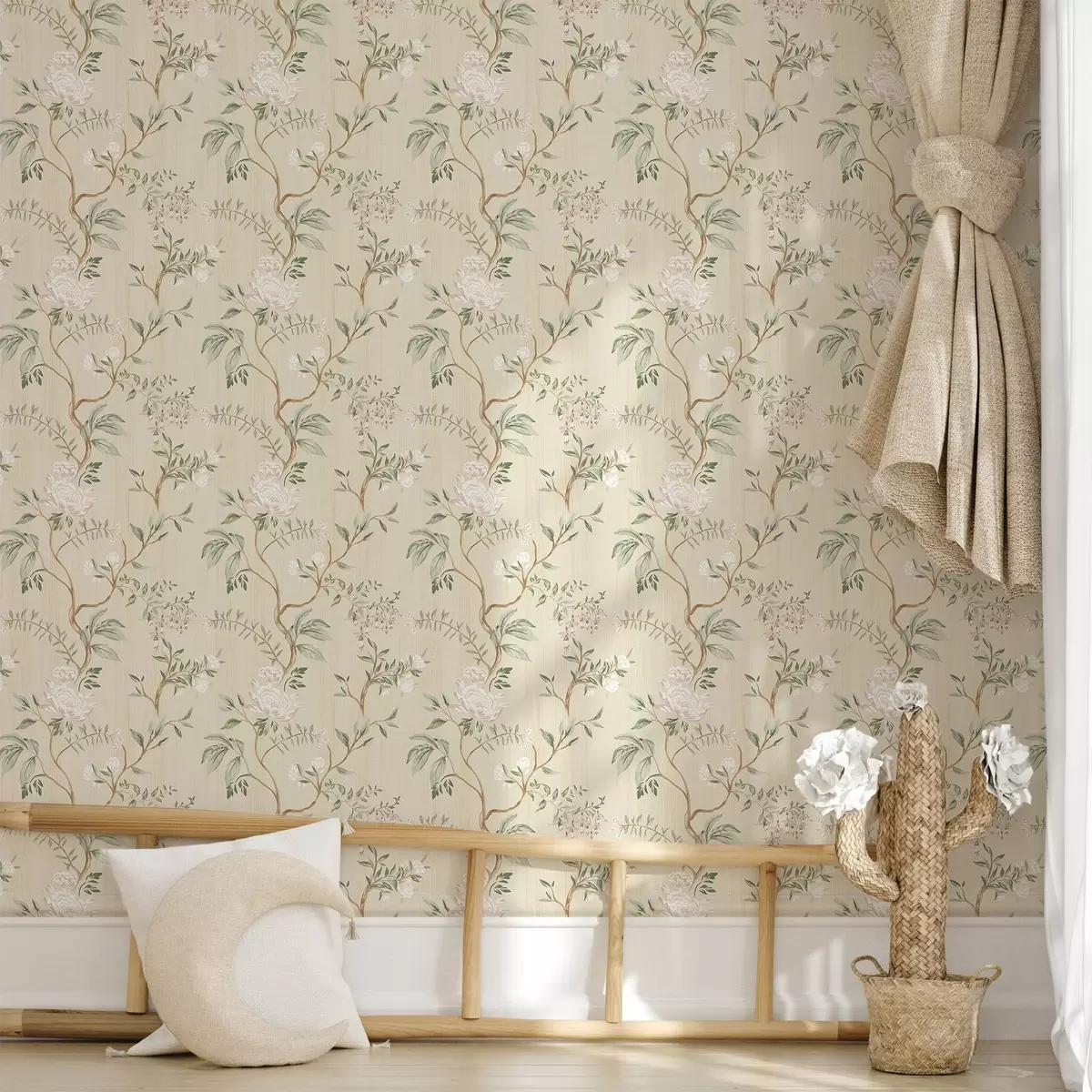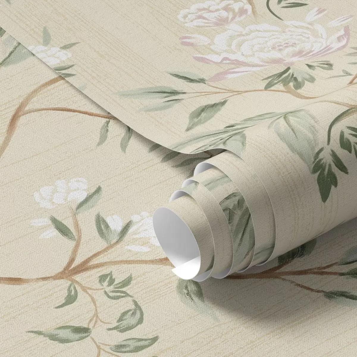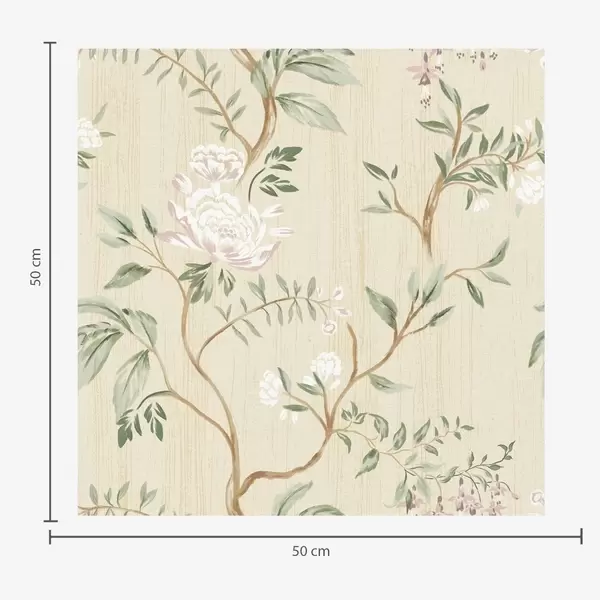 Tapeta Nježne grane s cvijećem na toploj krem pozadini br. a01084