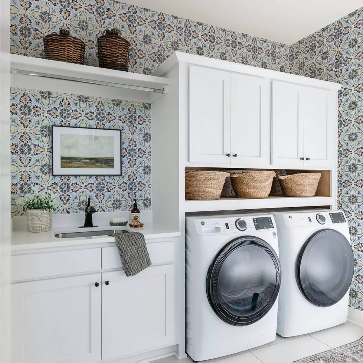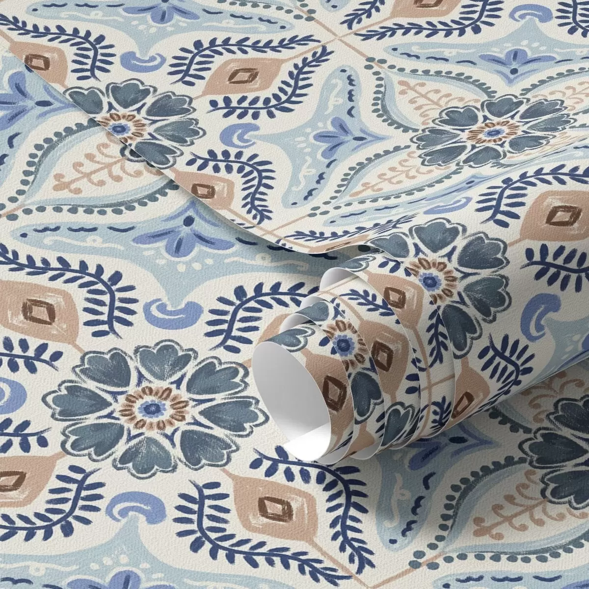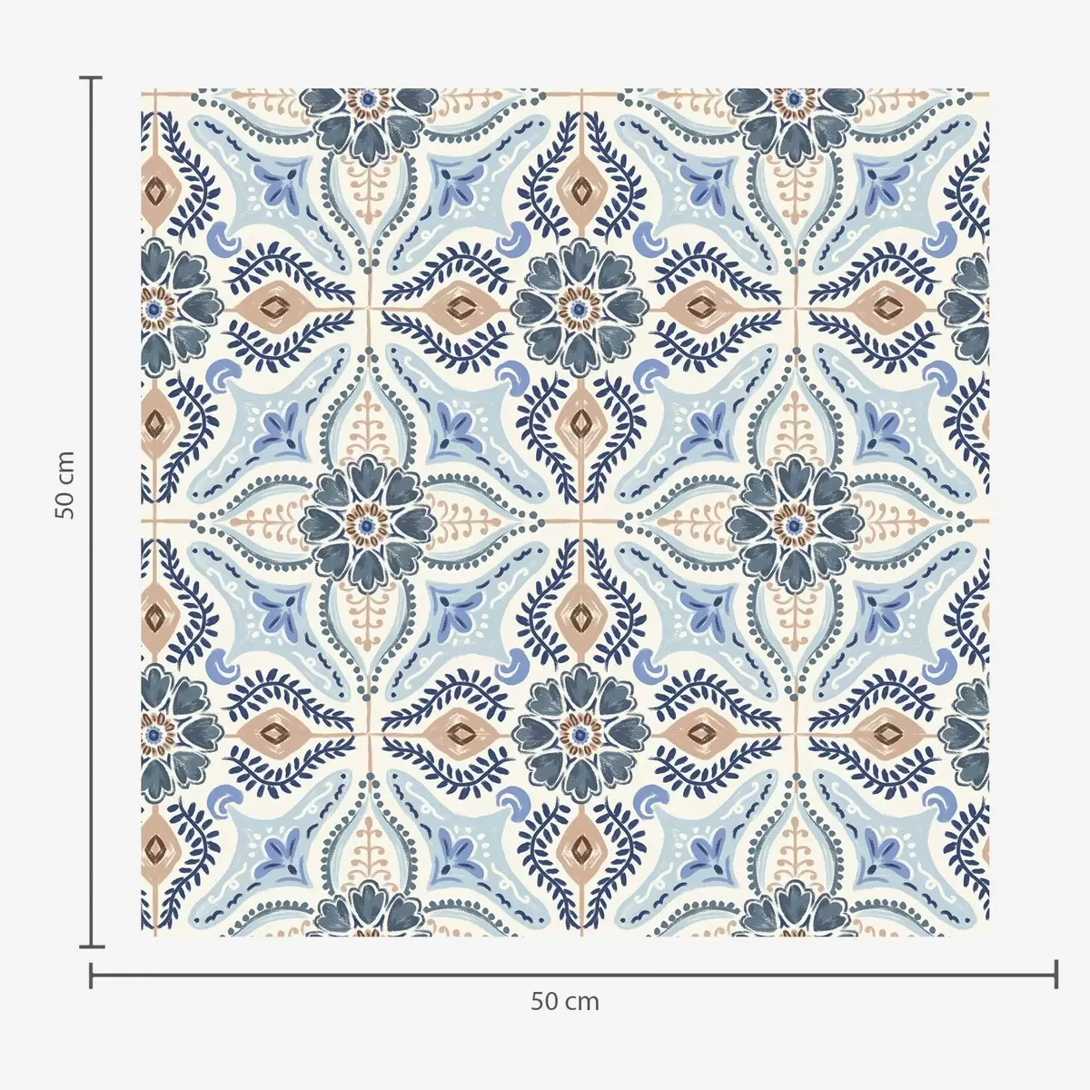 Tapeta Plavo-bež ukras u stilu pločica oslikan akvarelom br. a01085