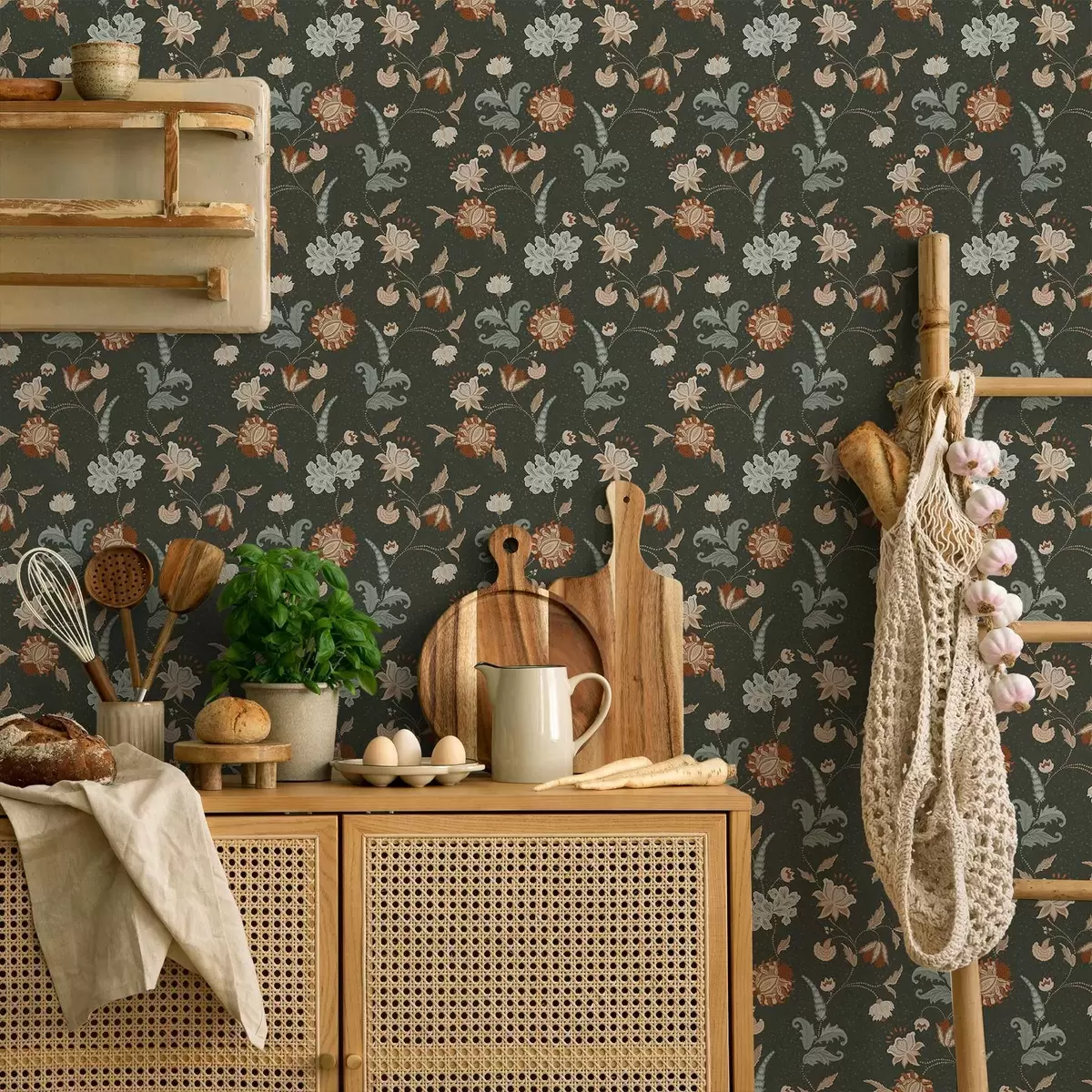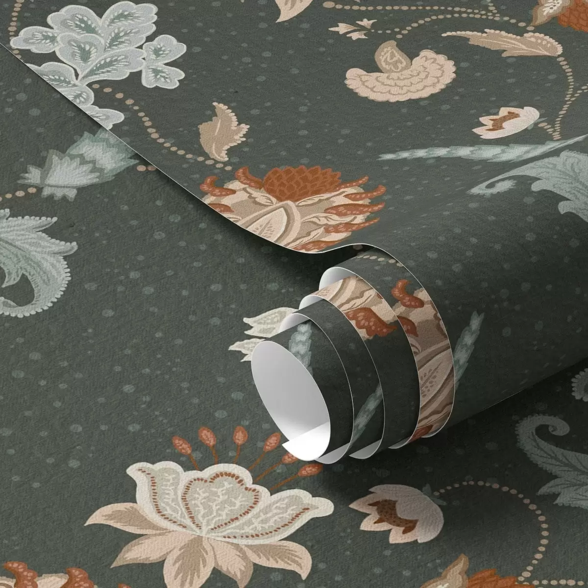 Tapeta Tamnozelena pozadina s ukrasnim cvijećem i lišćem br. a01086