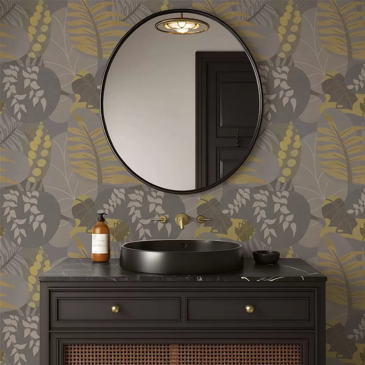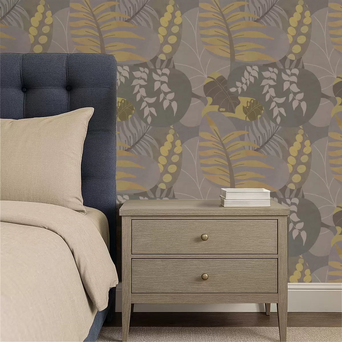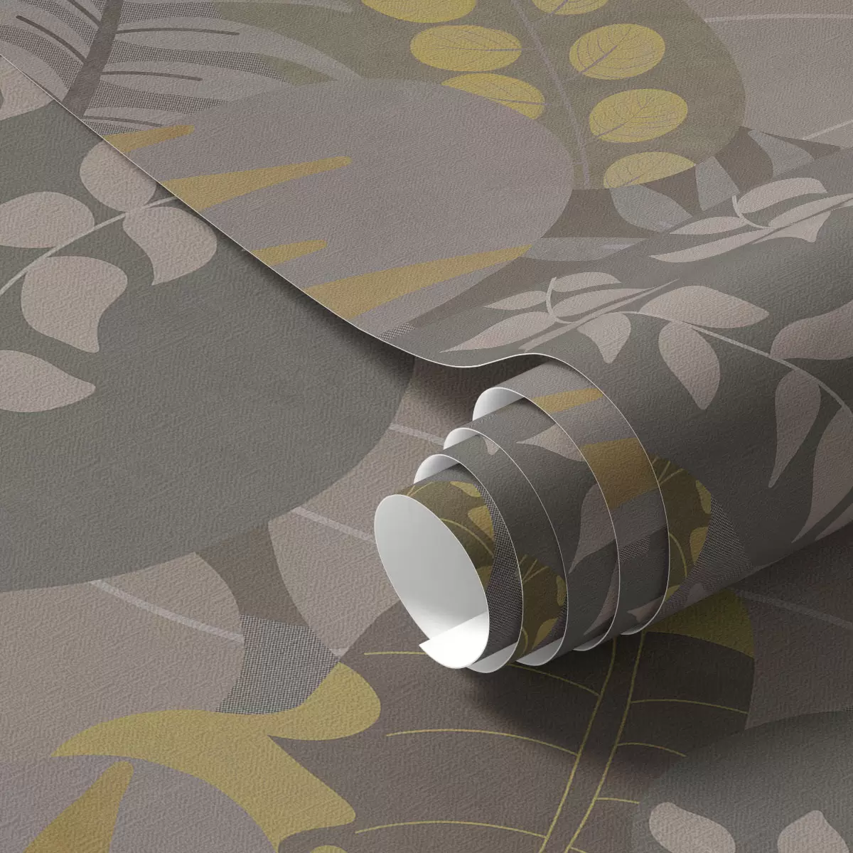 Tapeta Apstraktno lišće u sivim i žutim tonovima br. a01112