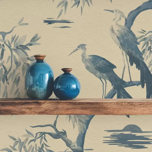 Tapeta Ptice na grani u plavim tonovima br. a01116