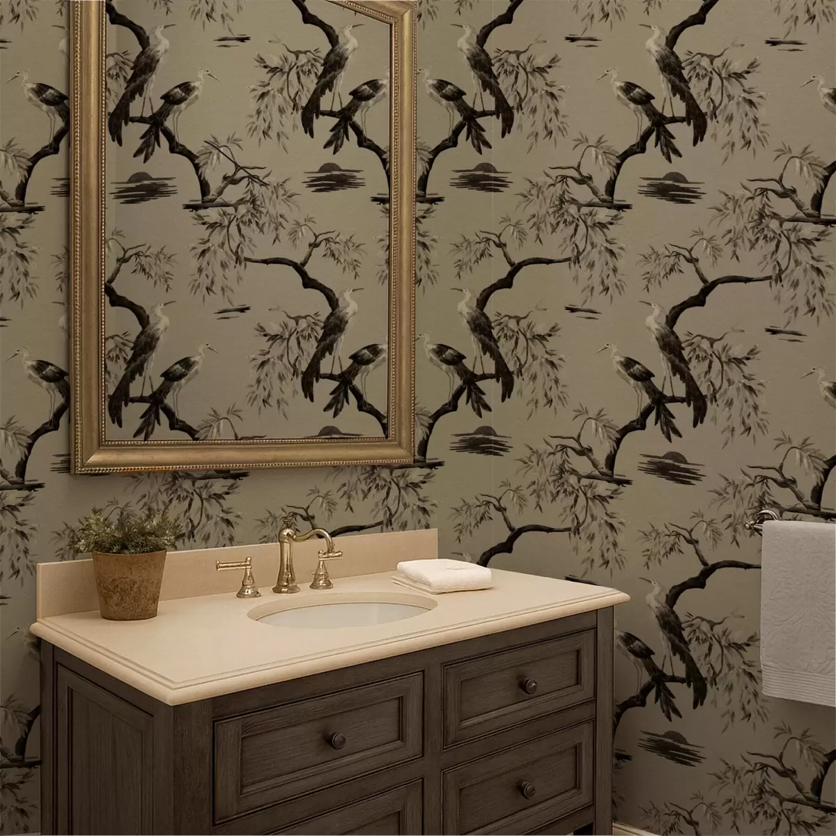 Tapeta Ptice na grani u monokromatskim tonovima br. a01116v2