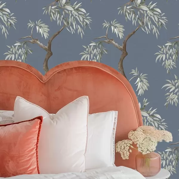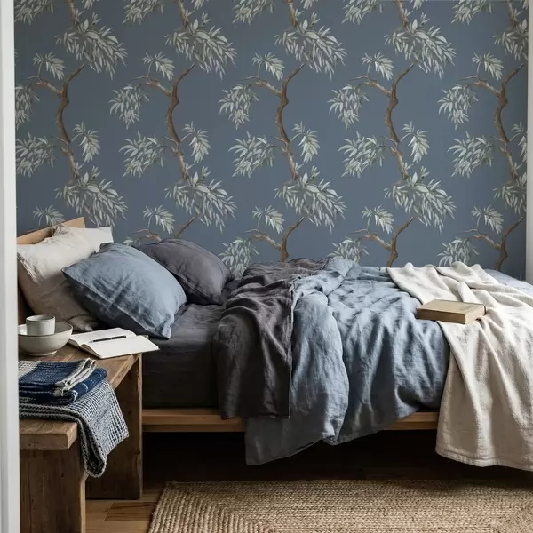 Tapeta Grana drveta s lišćem na plavoj pozadini br. a01117