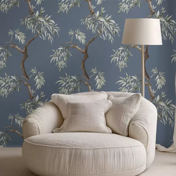 Tapeta Grana drveta s lišćem na plavoj pozadini br. a01117