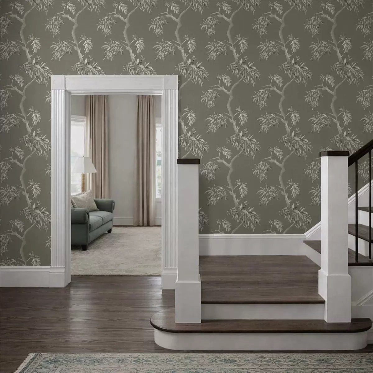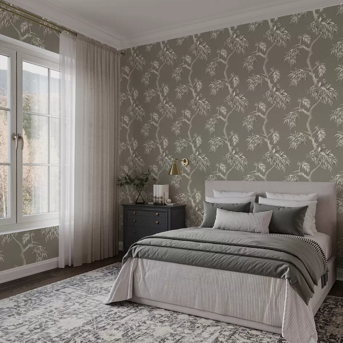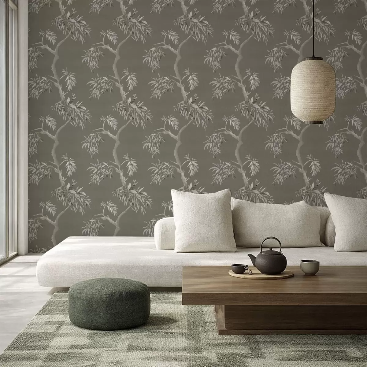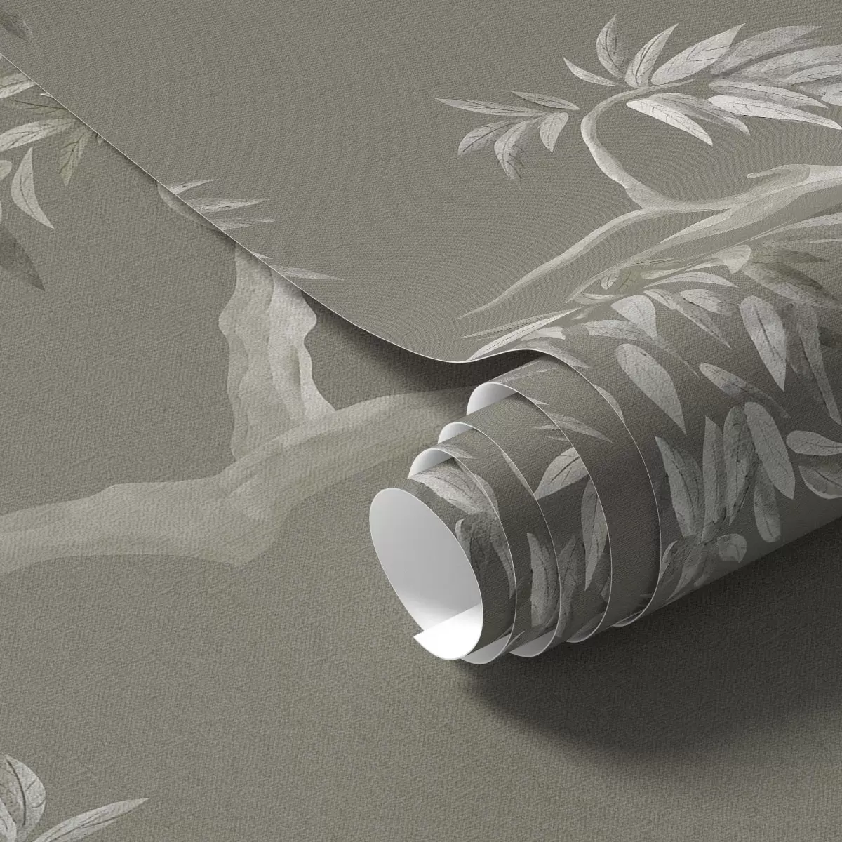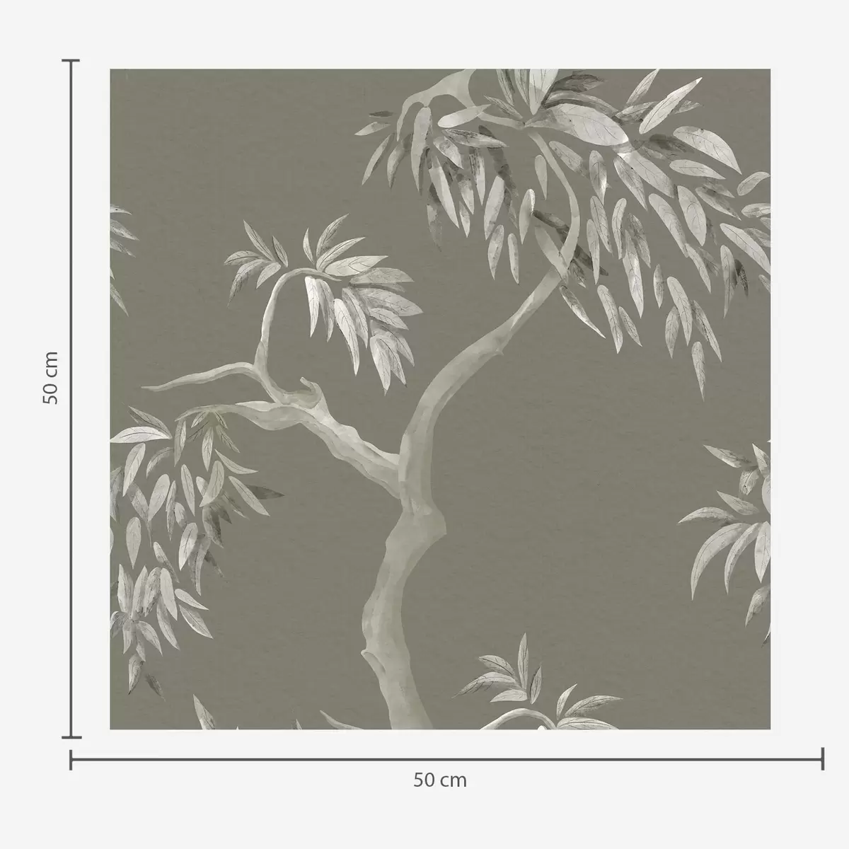 Tapeta Svijetla grana s lišćem na maslinastoj pozadini br. a01117v1