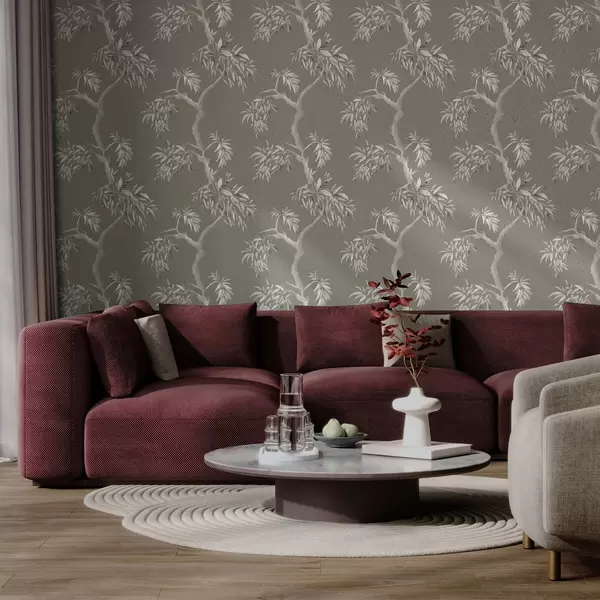 Tapeta Svijetla grana s lišćem na maslinastoj pozadini br. a01117v1