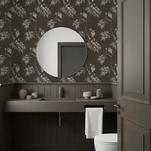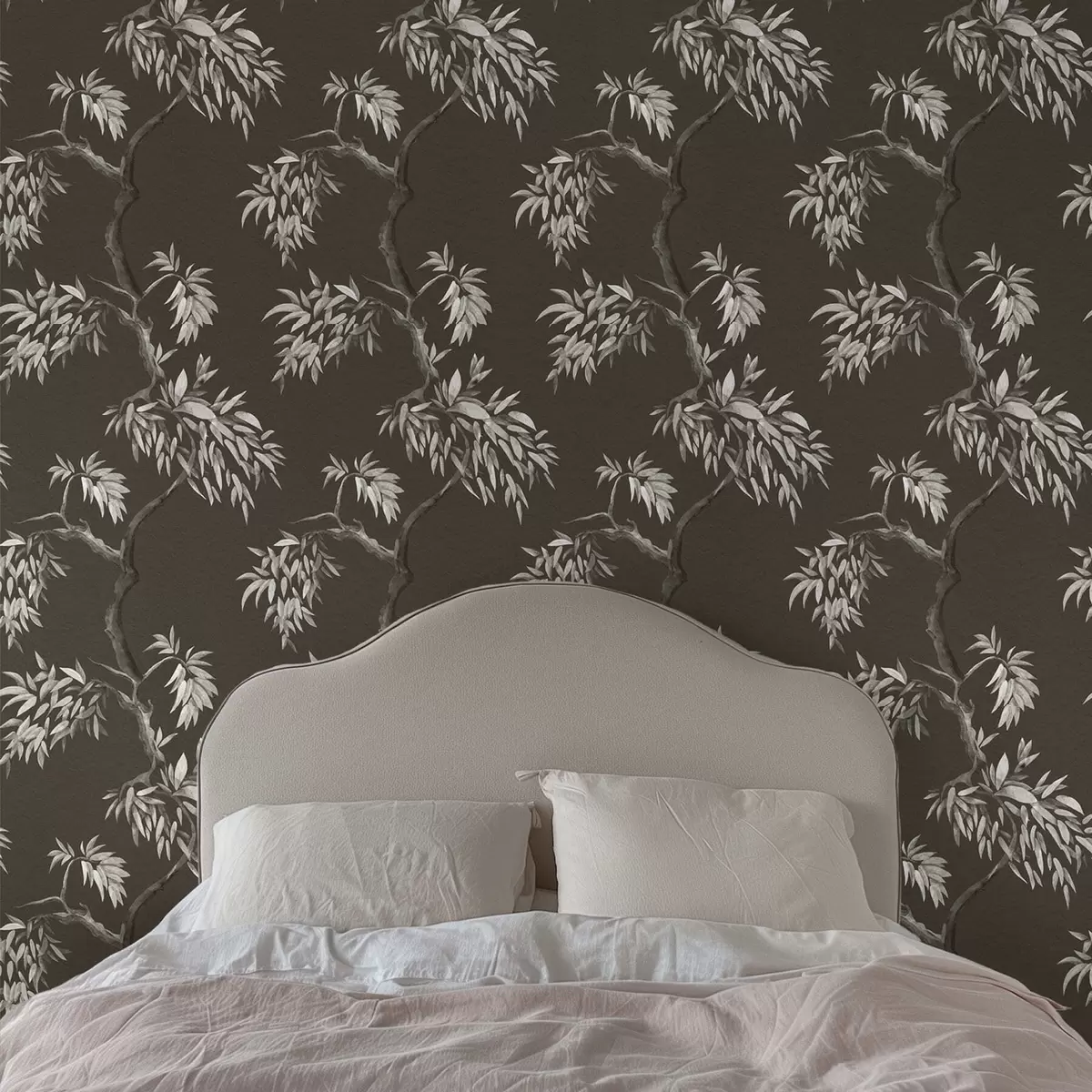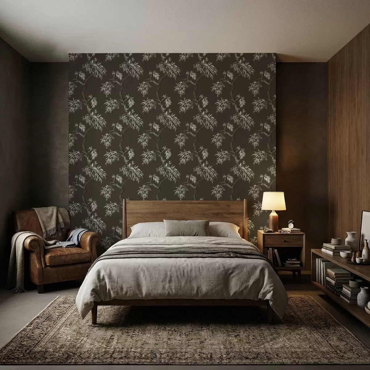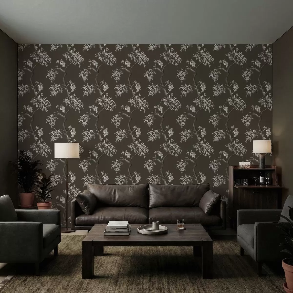 Tapeta Jednobojna grana s lišćem na tamnoj pozadini br. a01117v2