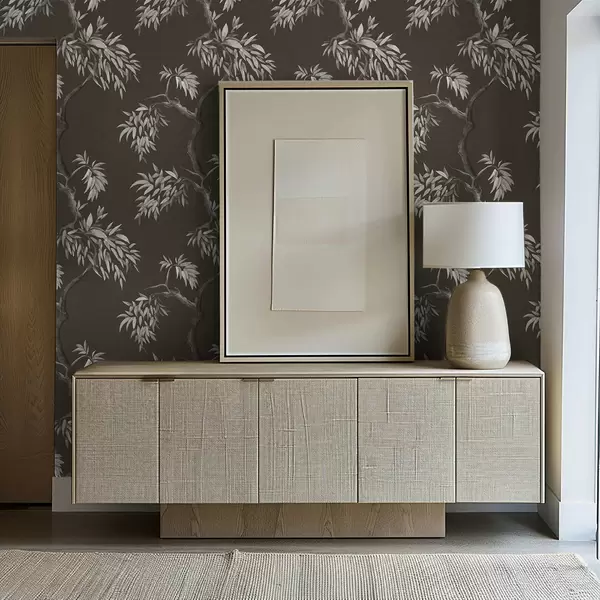Tapeta Jednobojna grana s lišćem na tamnoj pozadini br. a01117v2