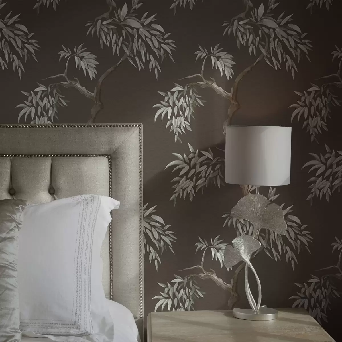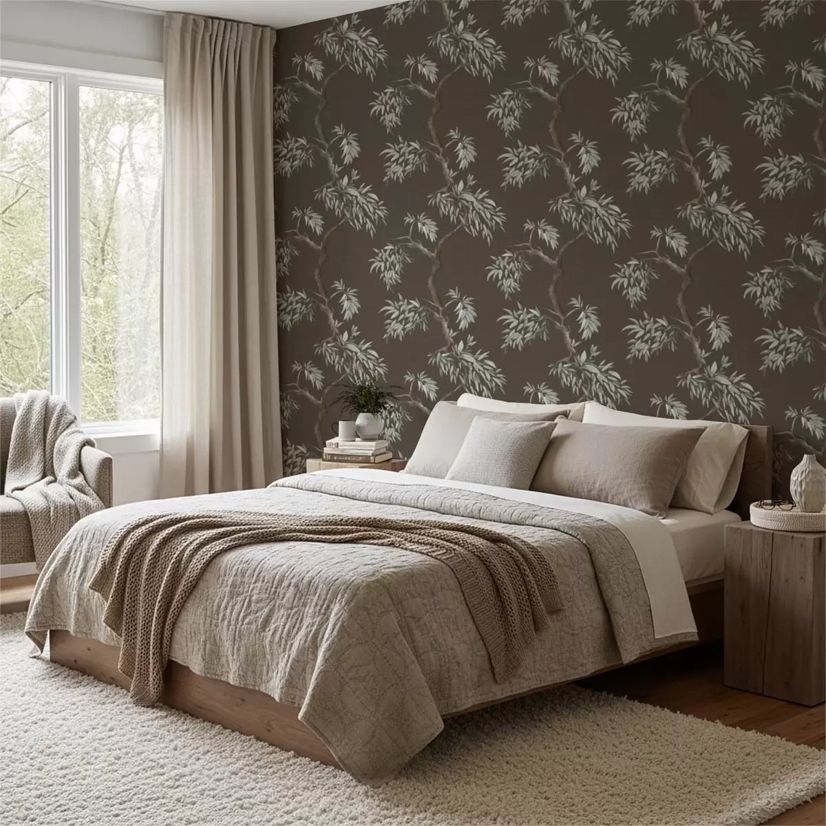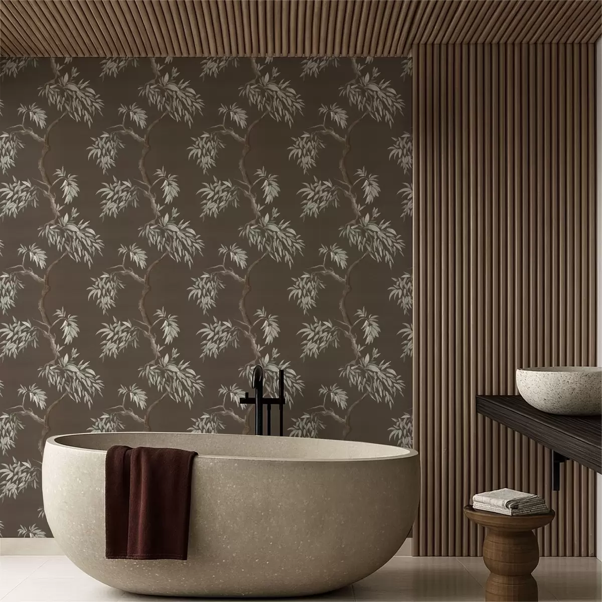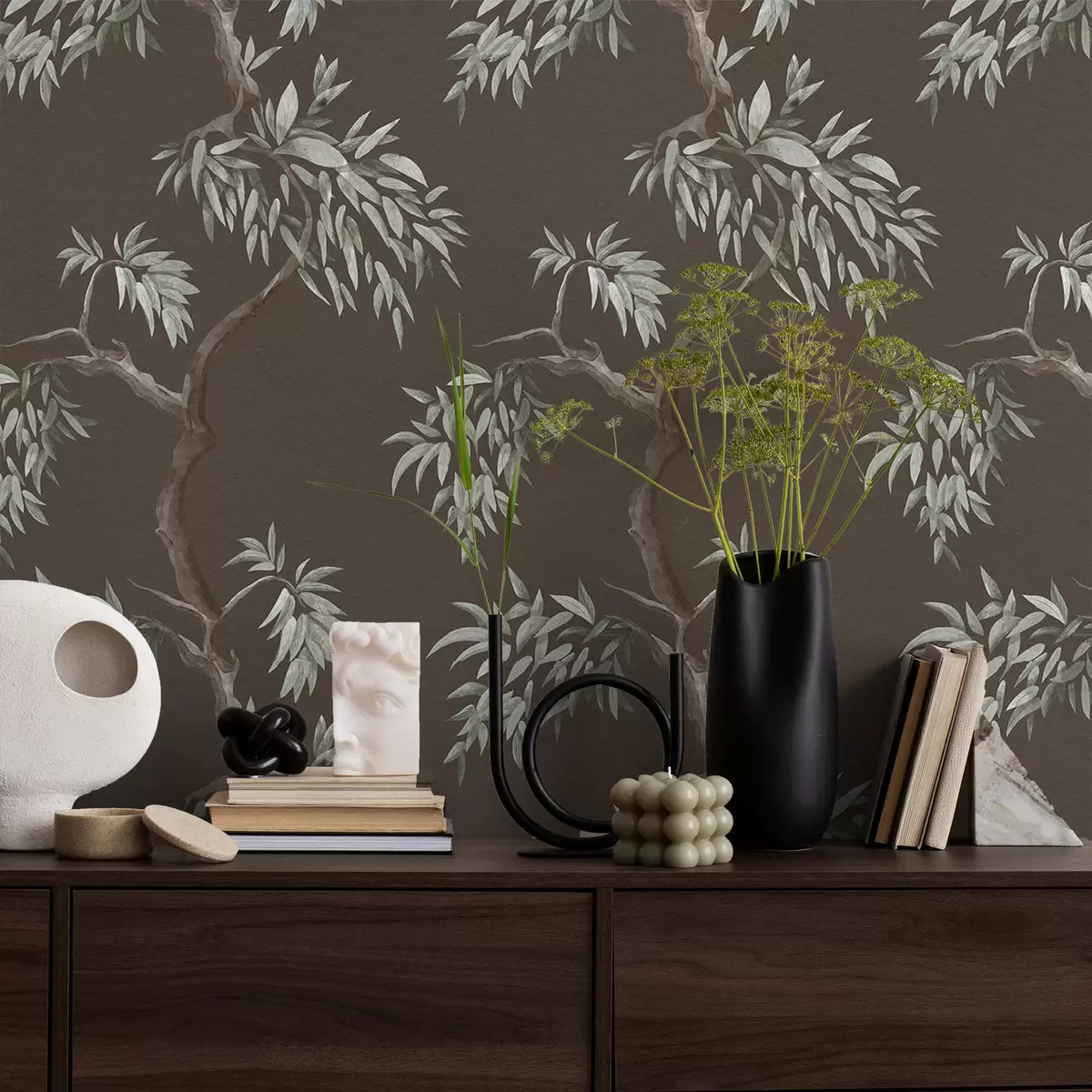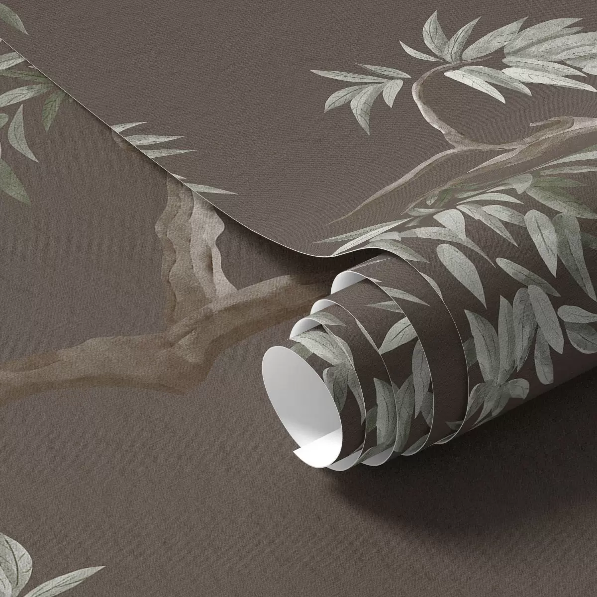 Tapeta Grana drveta s lišćem na smeđoj pozadini br. a01117v3