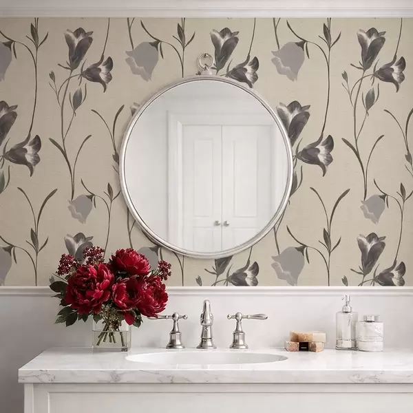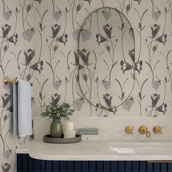 Tapeta Sivi zvončići na svijetlo bež pozadini br. a01119