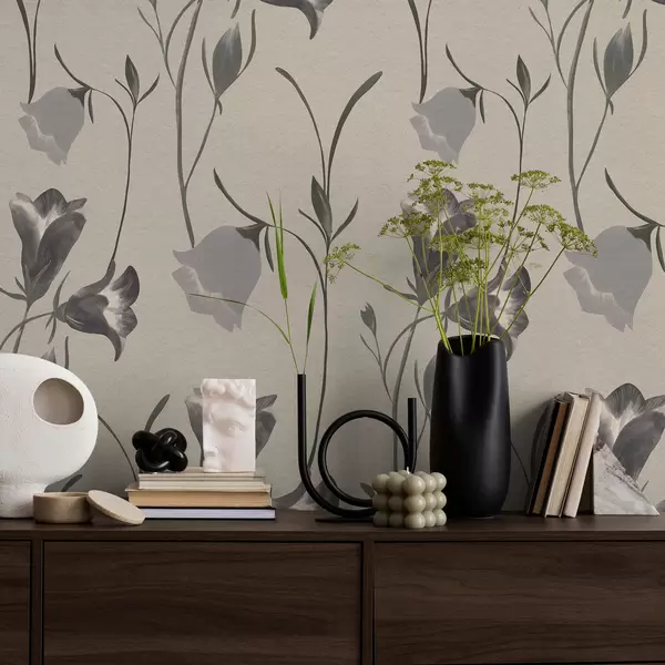 Tapeta Sivi zvončići na svijetlo bež pozadini br. a01119