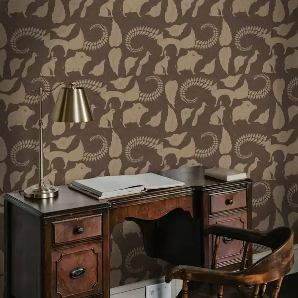 Tapeta Šumski uzorak sa životinjama na smeđoj pozadini br. a01121