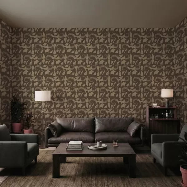 Tapeta Šumski uzorak sa životinjama na smeđoj pozadini br. a01121