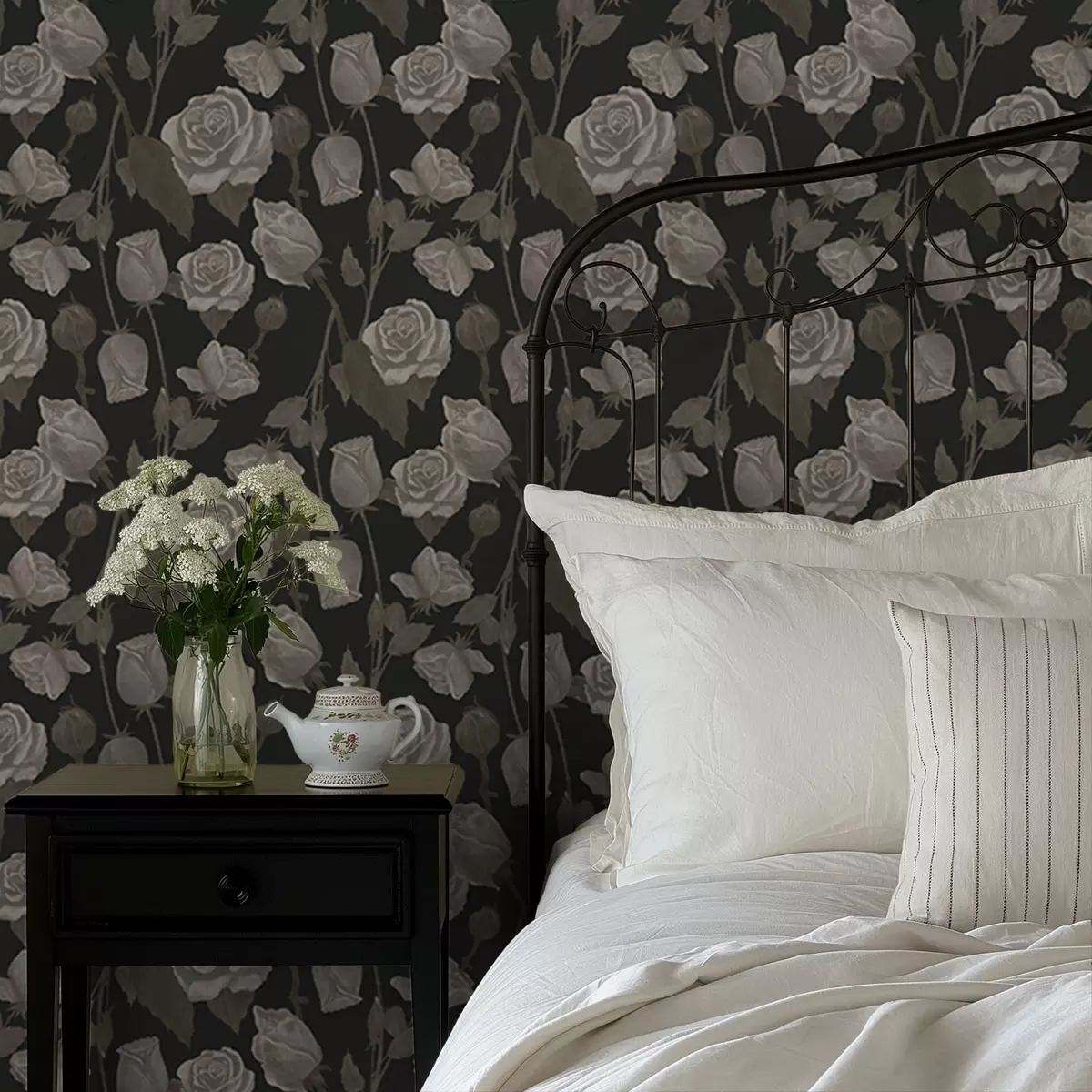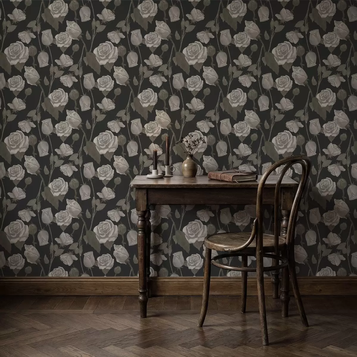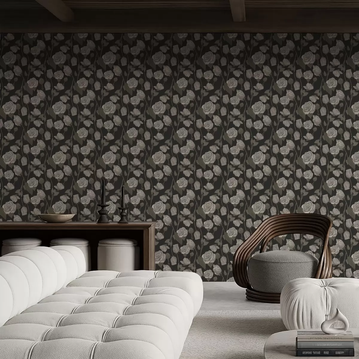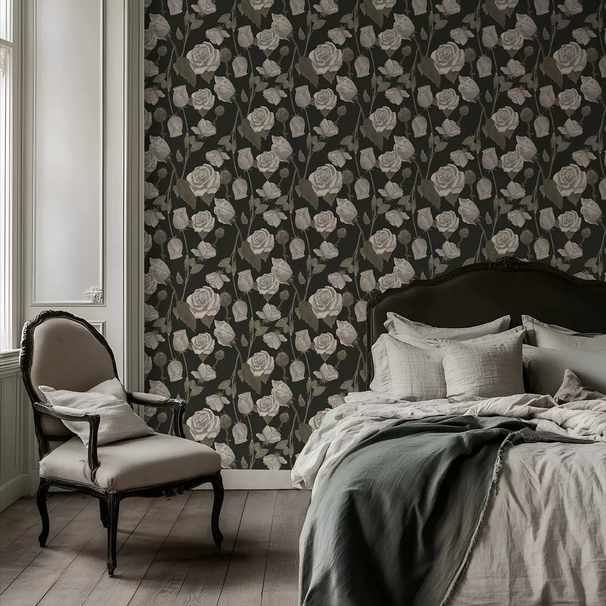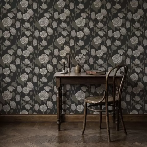Tapeta Cvjetni uzorak s ružama na tamnoj pozadini br. a01123