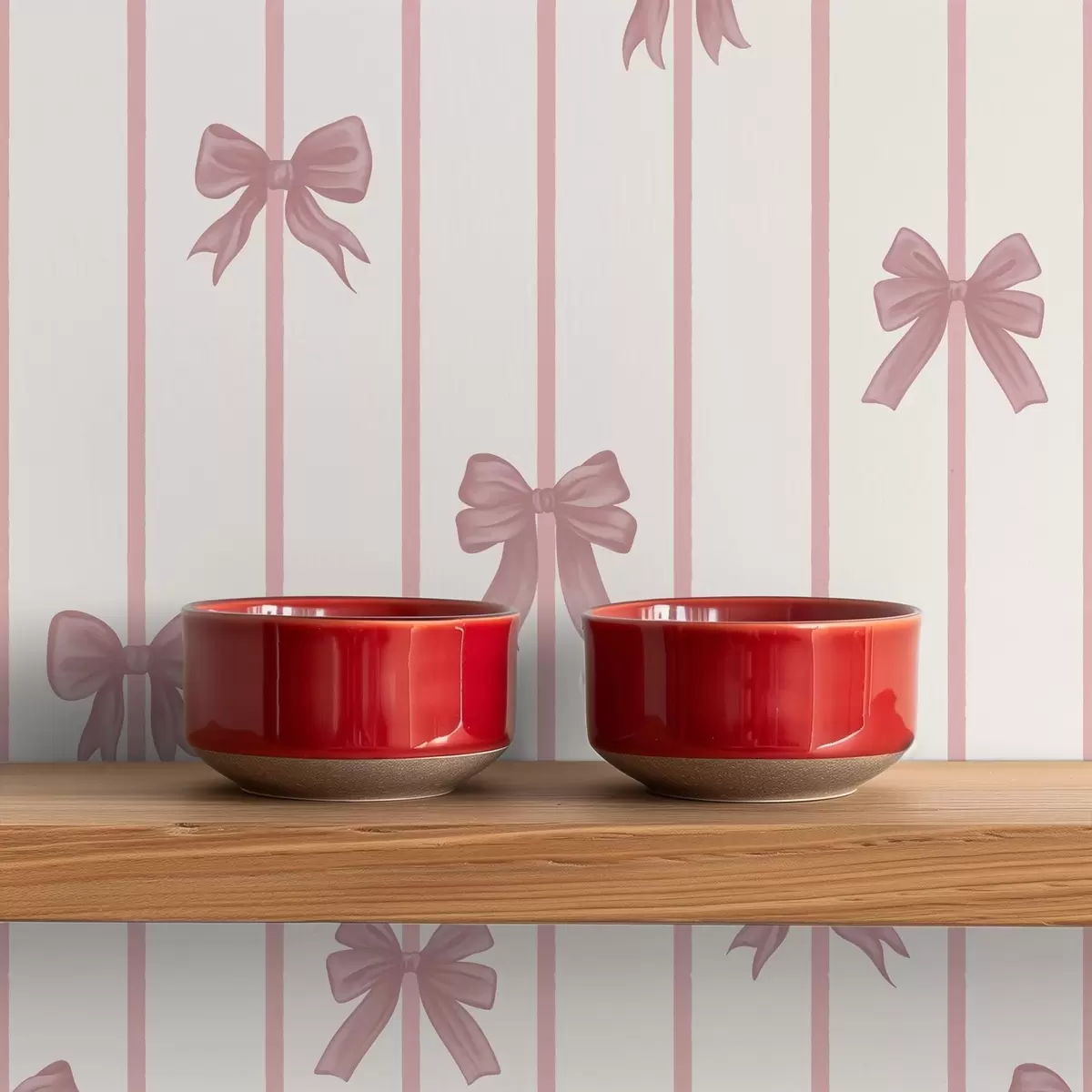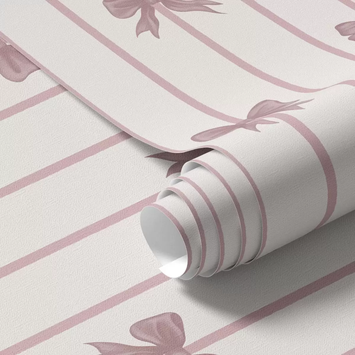 Tapeta Ružičaste mašne na okomitim prugama na svijetloj pozadini br. a01162