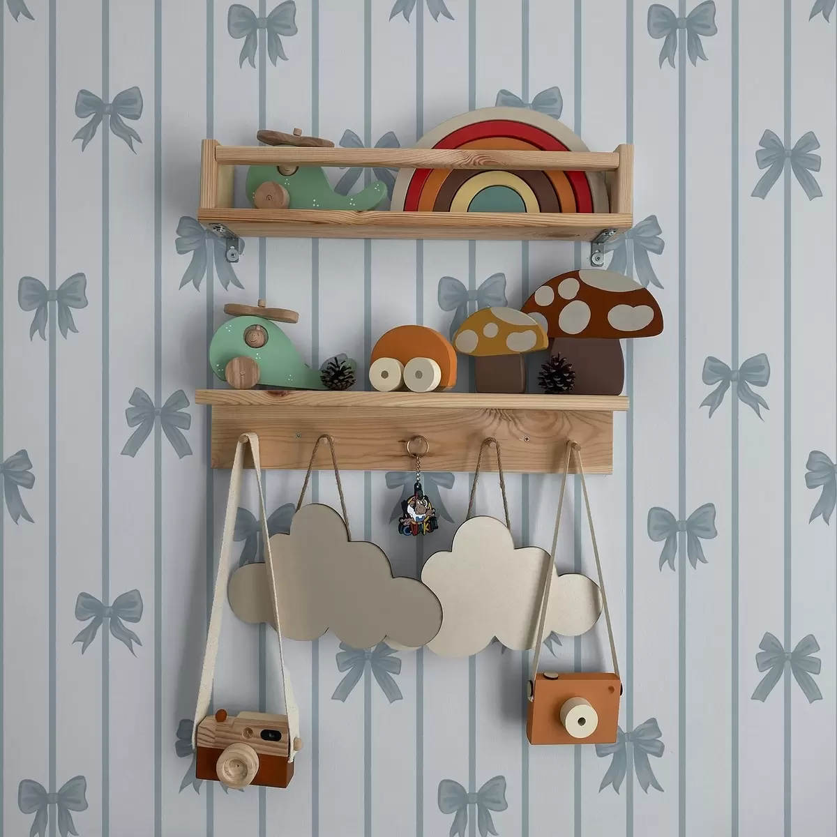 Tapeta Plave mašne na prugastoj svijetloj pozadini br. a01162v2