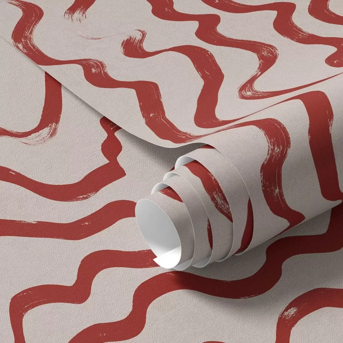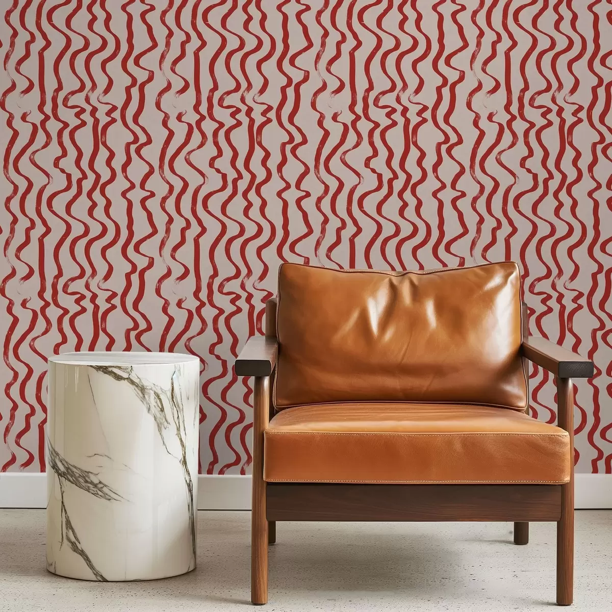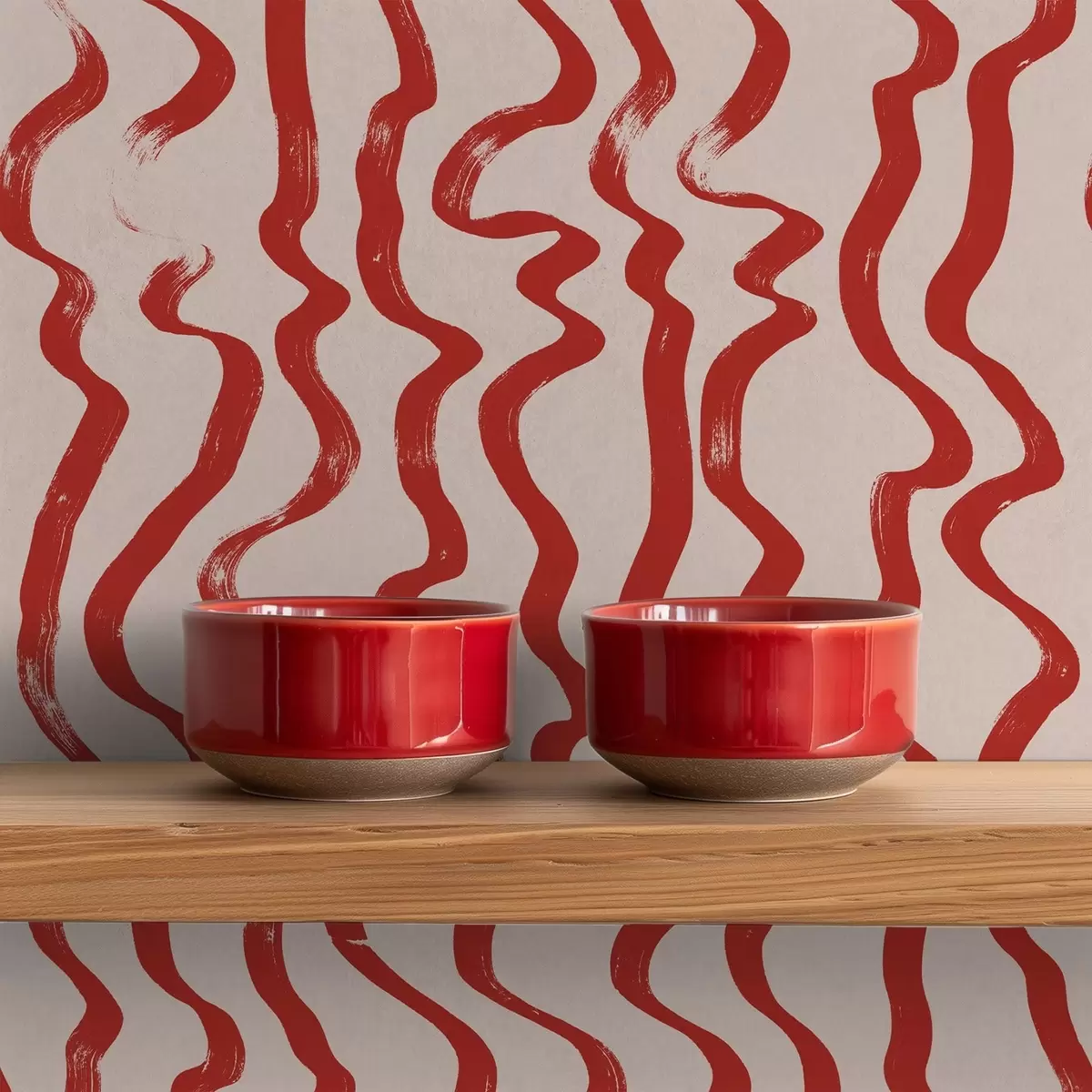 Tapeta Crvene valovite linije na svijetloj pozadini br. a01168