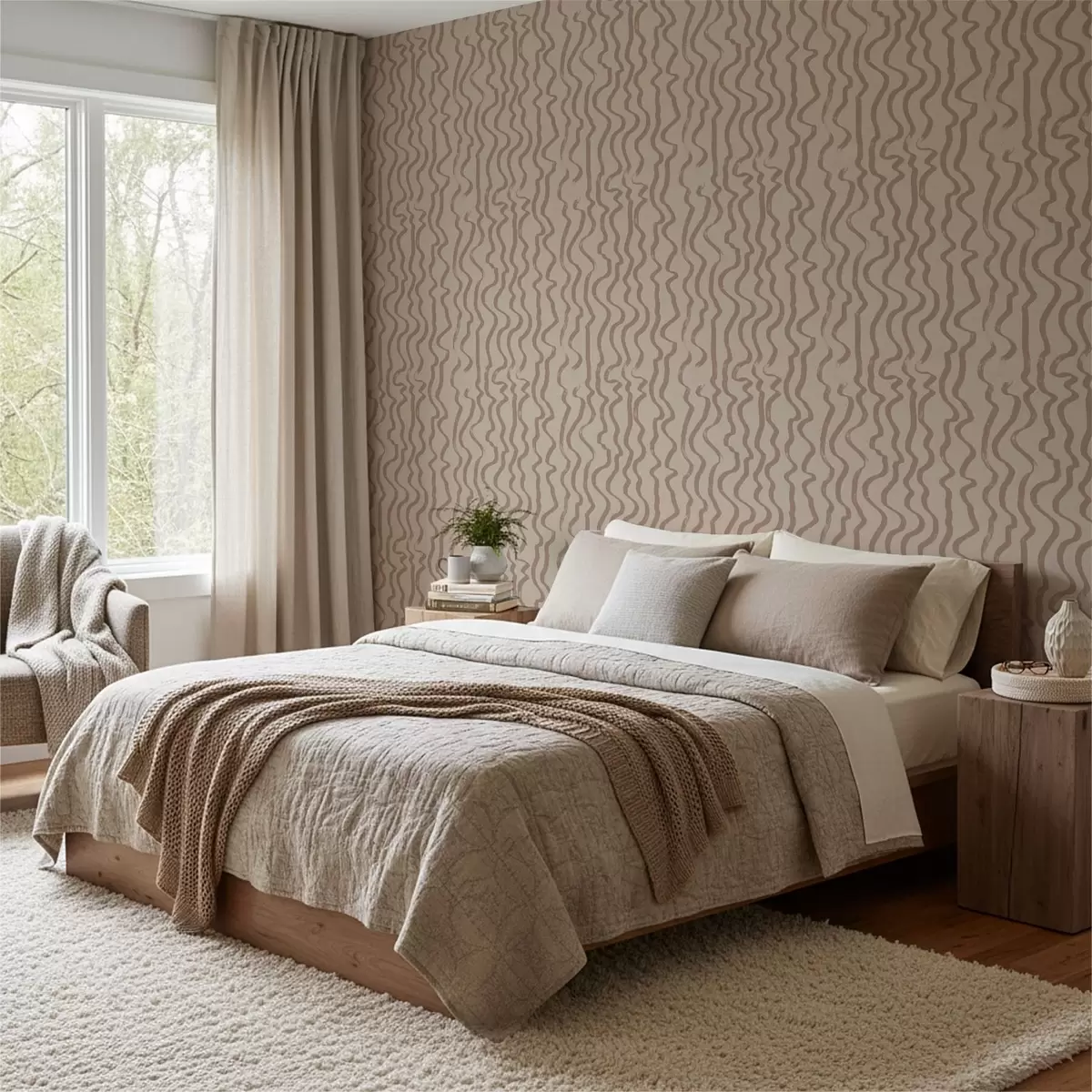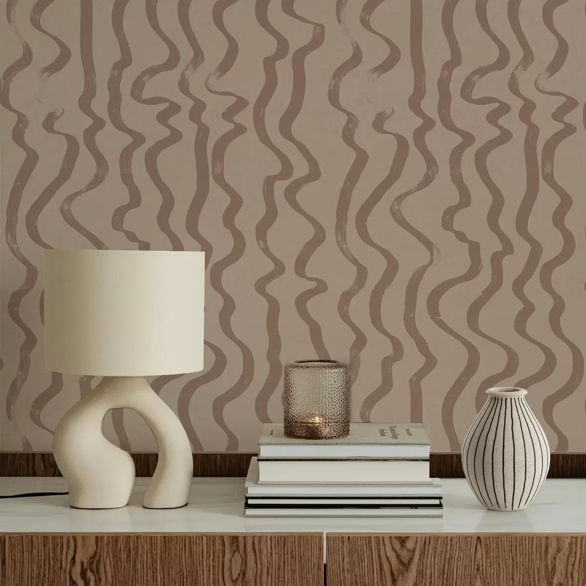 Tapeta Bež valovite linije na svijetloj pozadini br. a01168v2