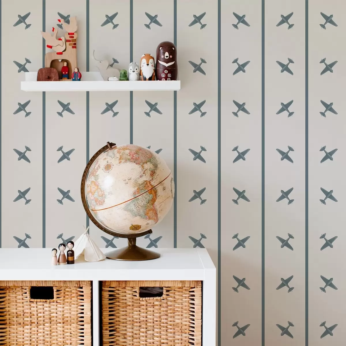 Tapeta Avioni u prugastom uzorku s plavim detaljima br. a01169