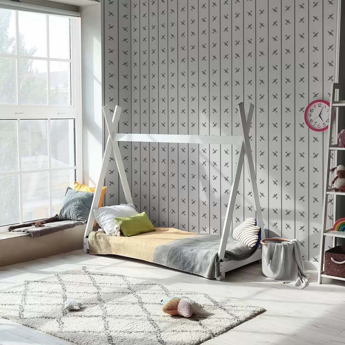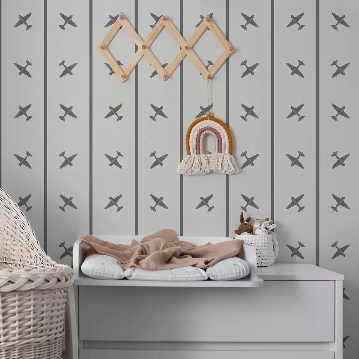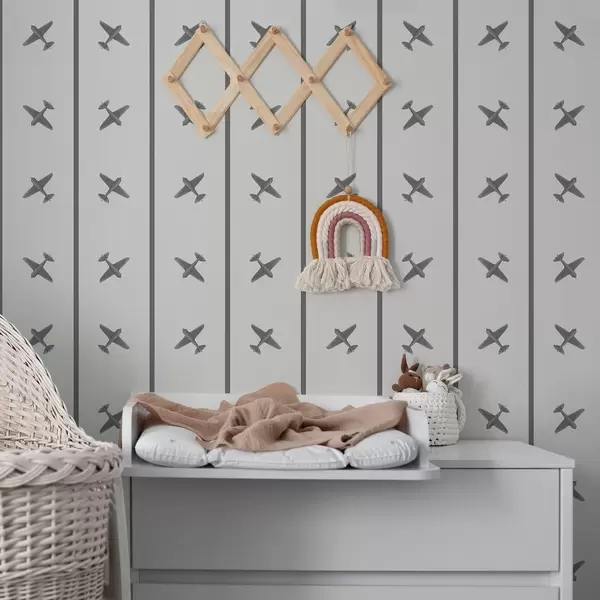 Tapeta Avioni u prugastom uzorku sa sivim tonovima br. a01169v2