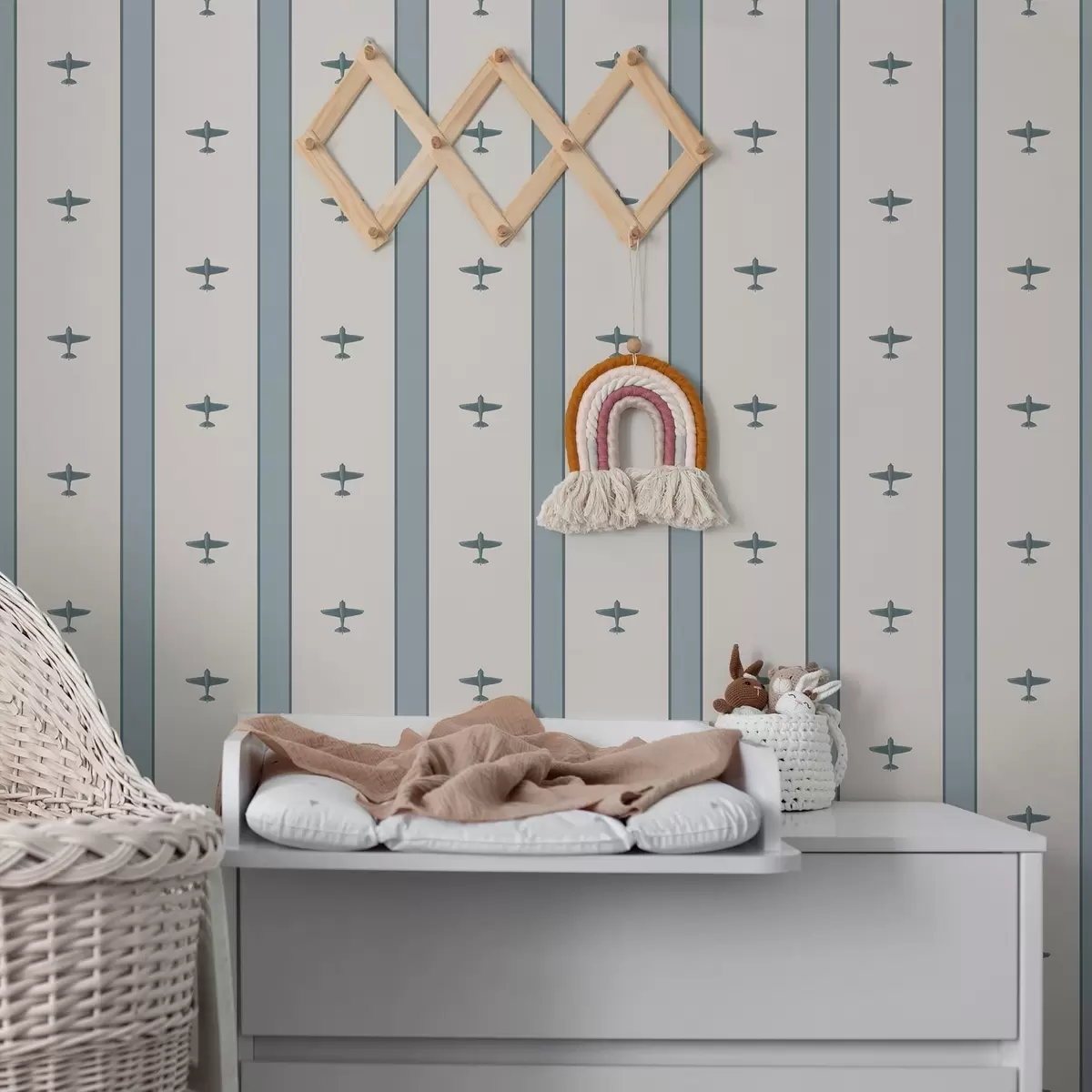 Tapeta Mali avioni u prugama na plavoj pozadini br. a01171