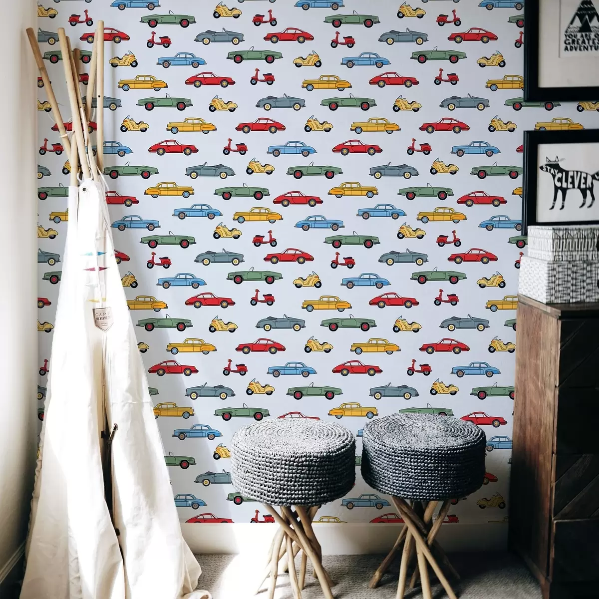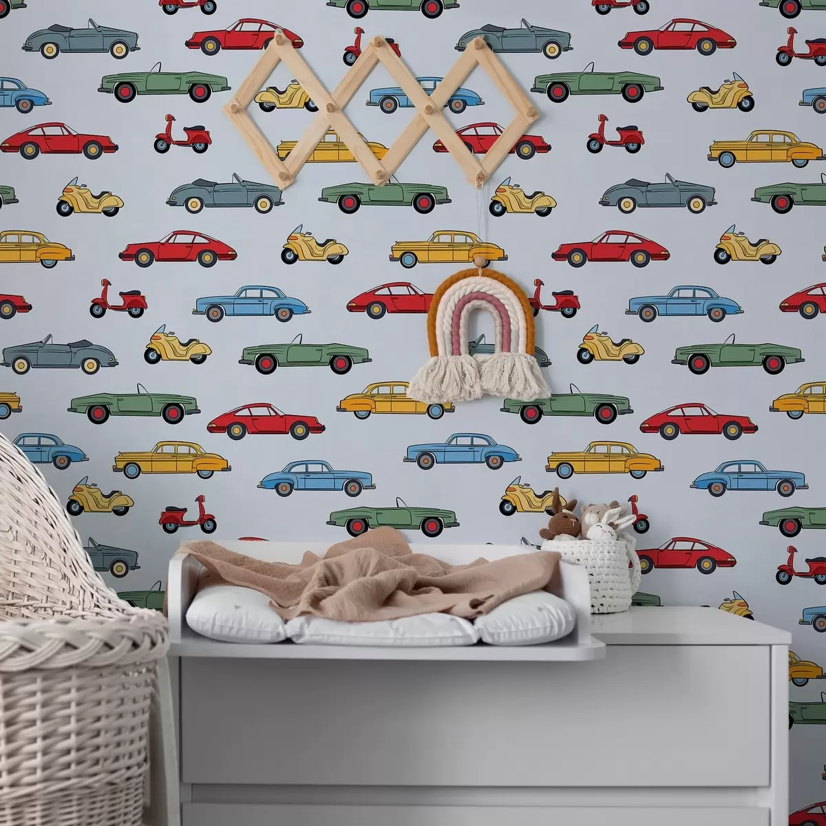 Tapeta Retro automobili i skuteri na plavoj pozadini br. a01172v2