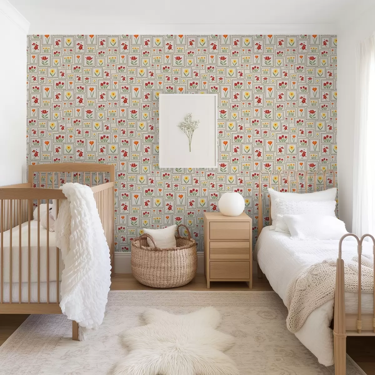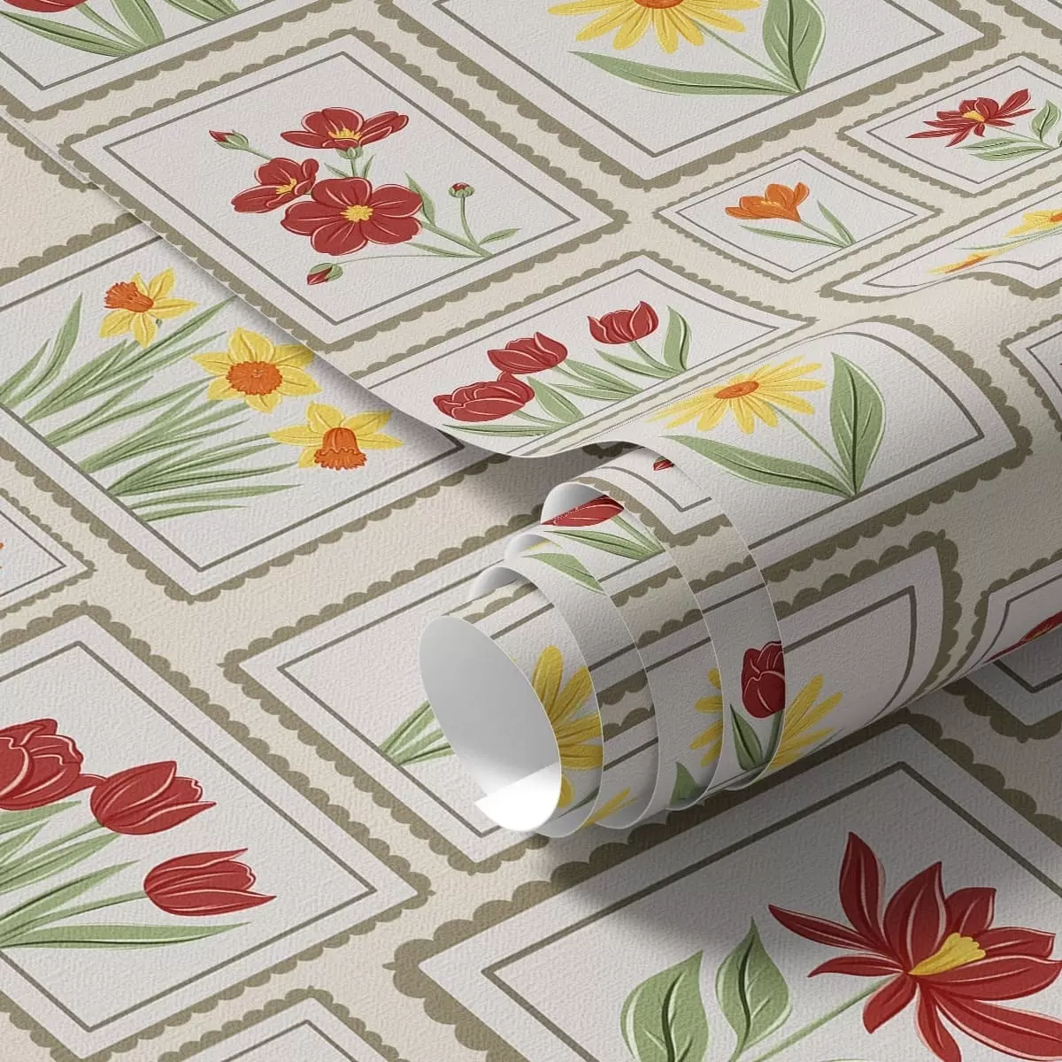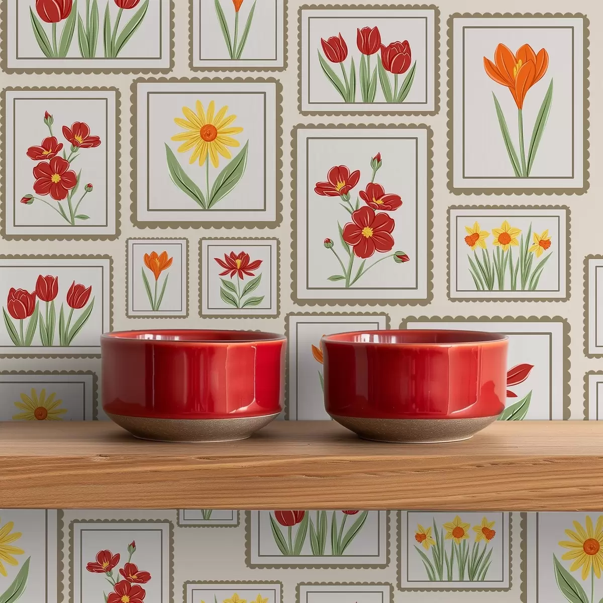 Tapeta Uokvirene cvjetne ilustracije u toplim tonovima br. a01173
