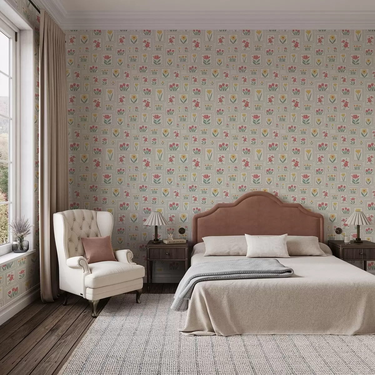 Tapeta Uokvirene cvjetne ilustracije na svijetloj pozadini br. a01173v1