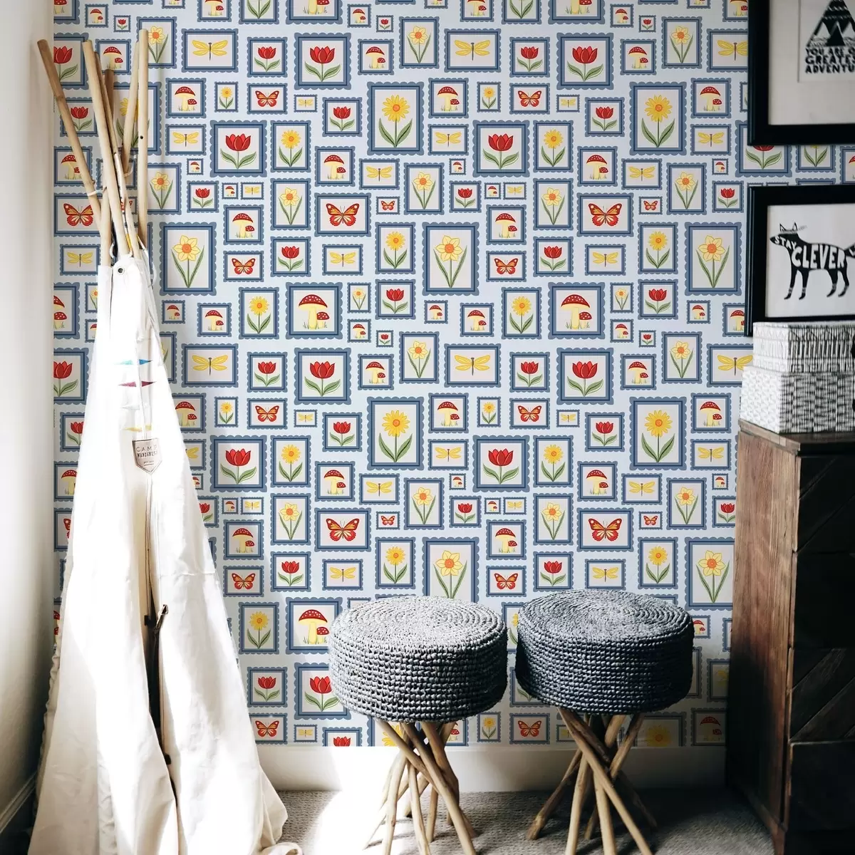 Tapeta Uokvirene ilustracije na plavoj pozadini br. a01176