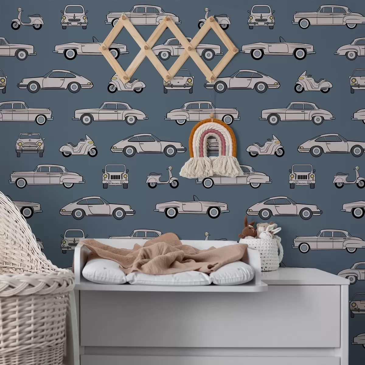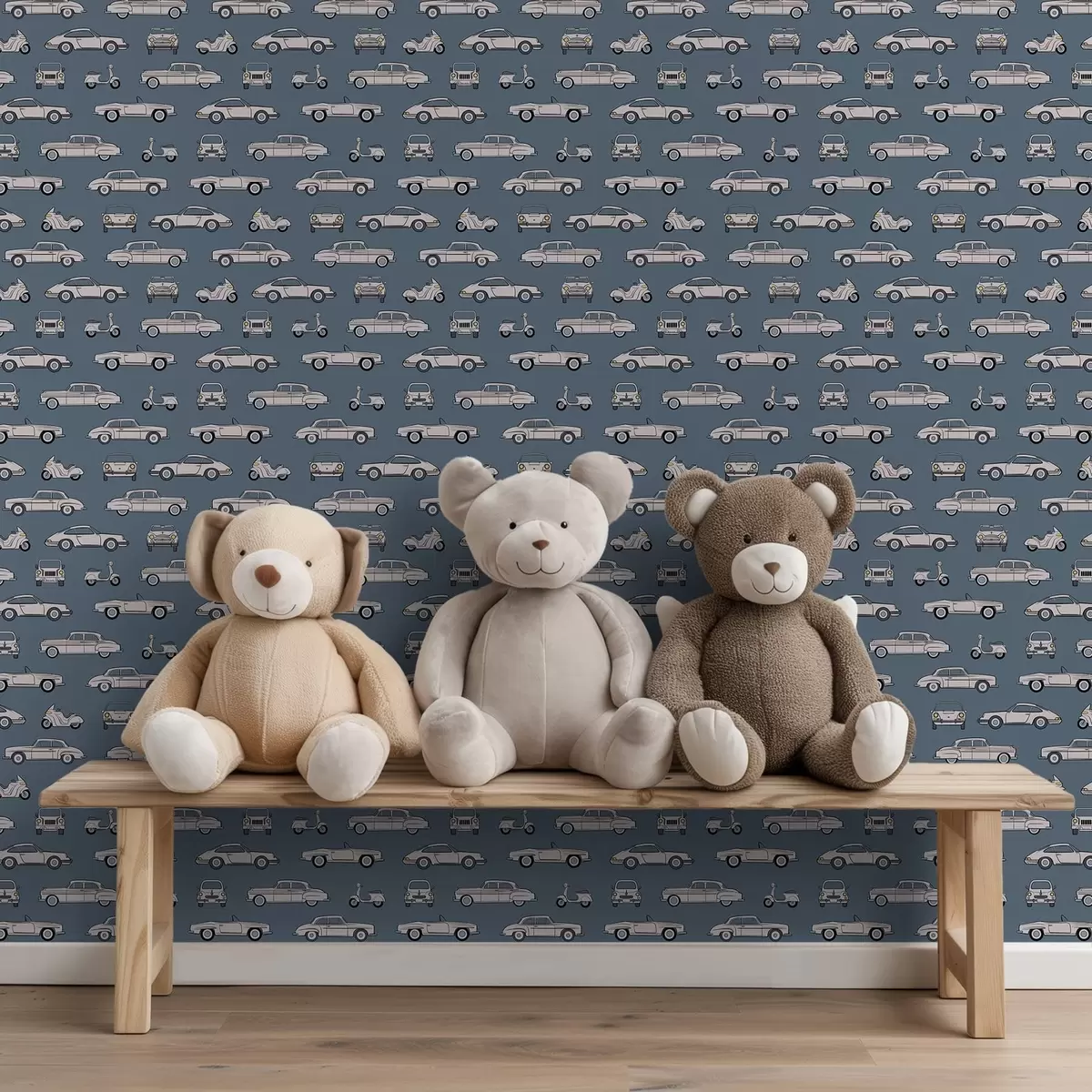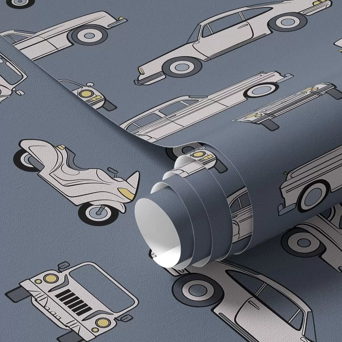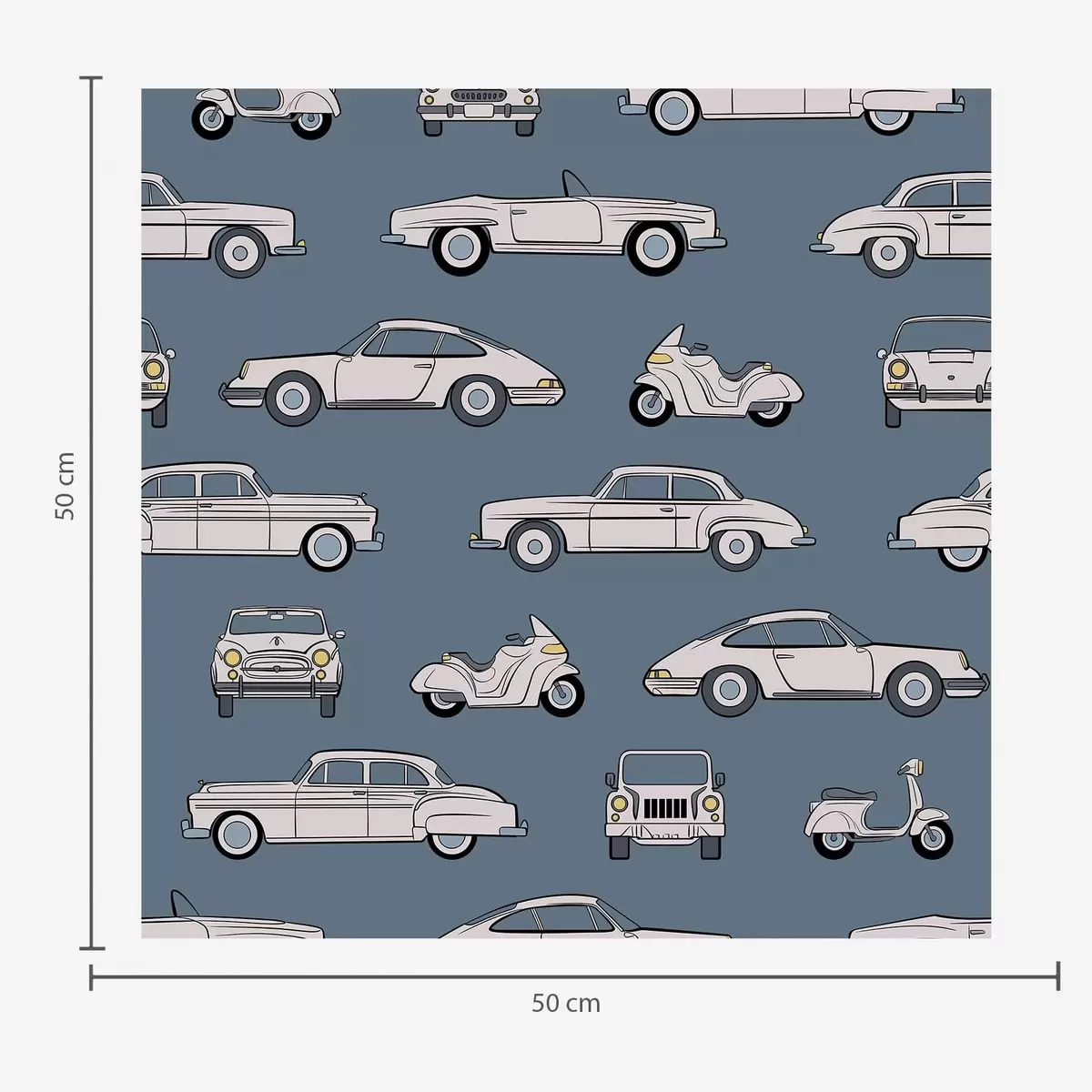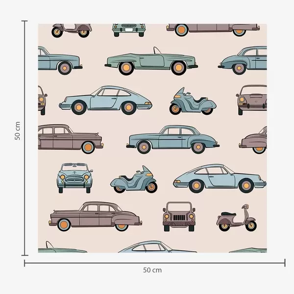 Tapeta Retro automobili i skuteri na plavoj pozadini br. a01178