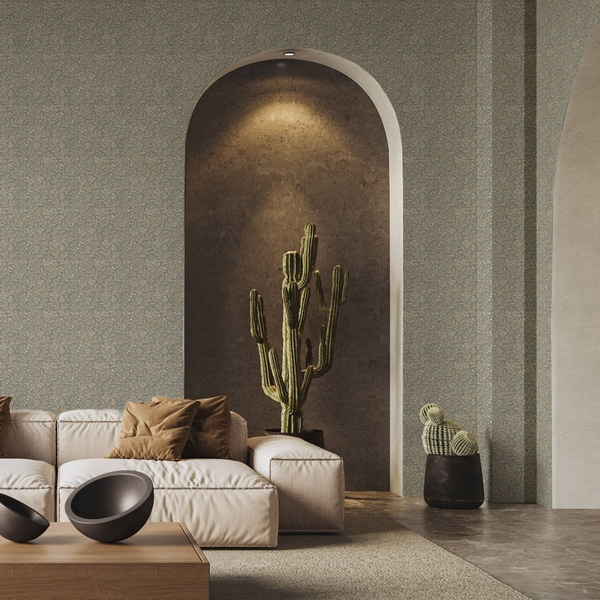 Zeleni damast s reljefnom teksturom na svijetloj pozadini